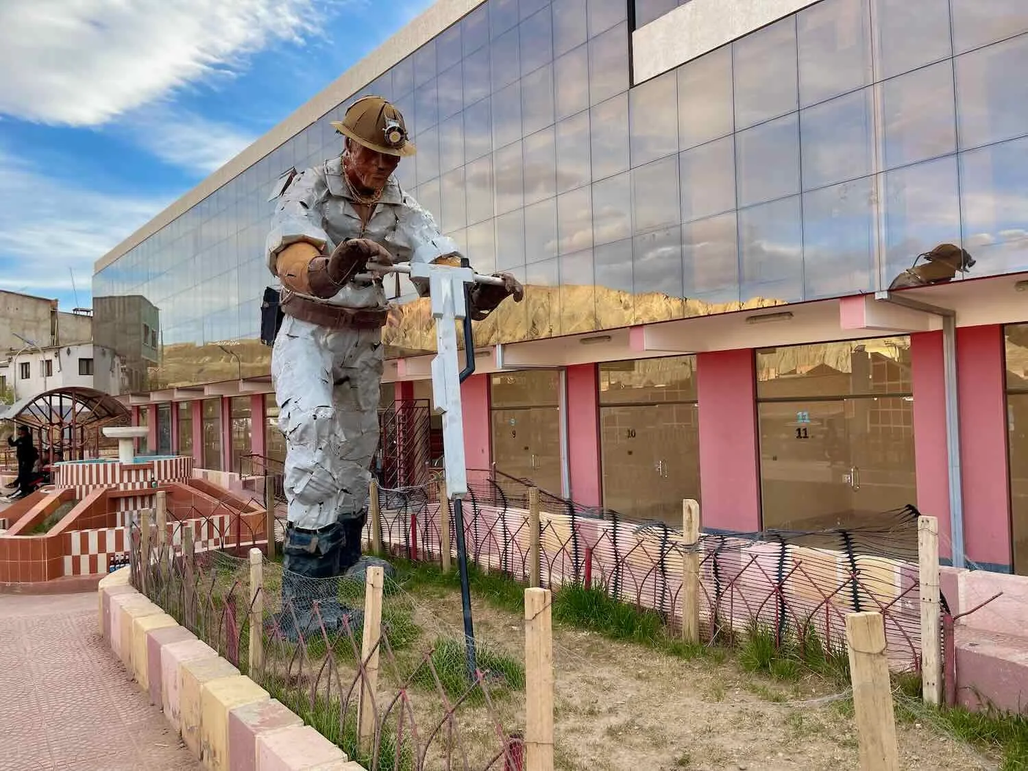 A statue outside a municipal building honored the town’s mining heritage. We were told that most of the men would spend their weekdays working in the mines, and primarily return to their families in the village on weekends. Atocha, Cordillera de Chicas, Potosí Department, Bolivia. Copyright © 2019-2025 Pedals and Puffins.