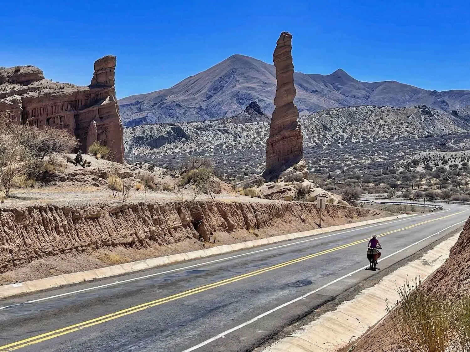 Soaring rock spires jutted skyward along our route. N of Tupiza, Potosí Department, Bolivia. Copyright © 2019-2025 Pedals and Puffins.