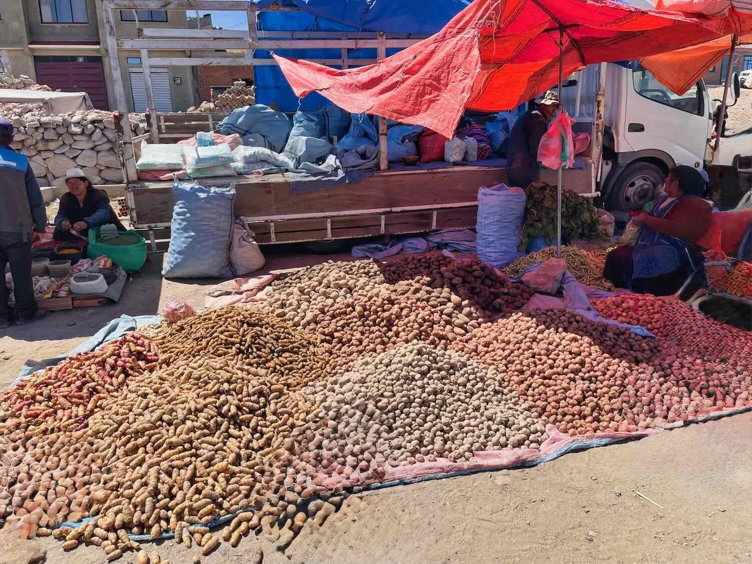 This vendor in the open-air market was selling at least ten different varieties of potatoes. Río Mulato, Potosí Department, Bolivia. Copyright © 2019-2025 Pedals and Puffins.