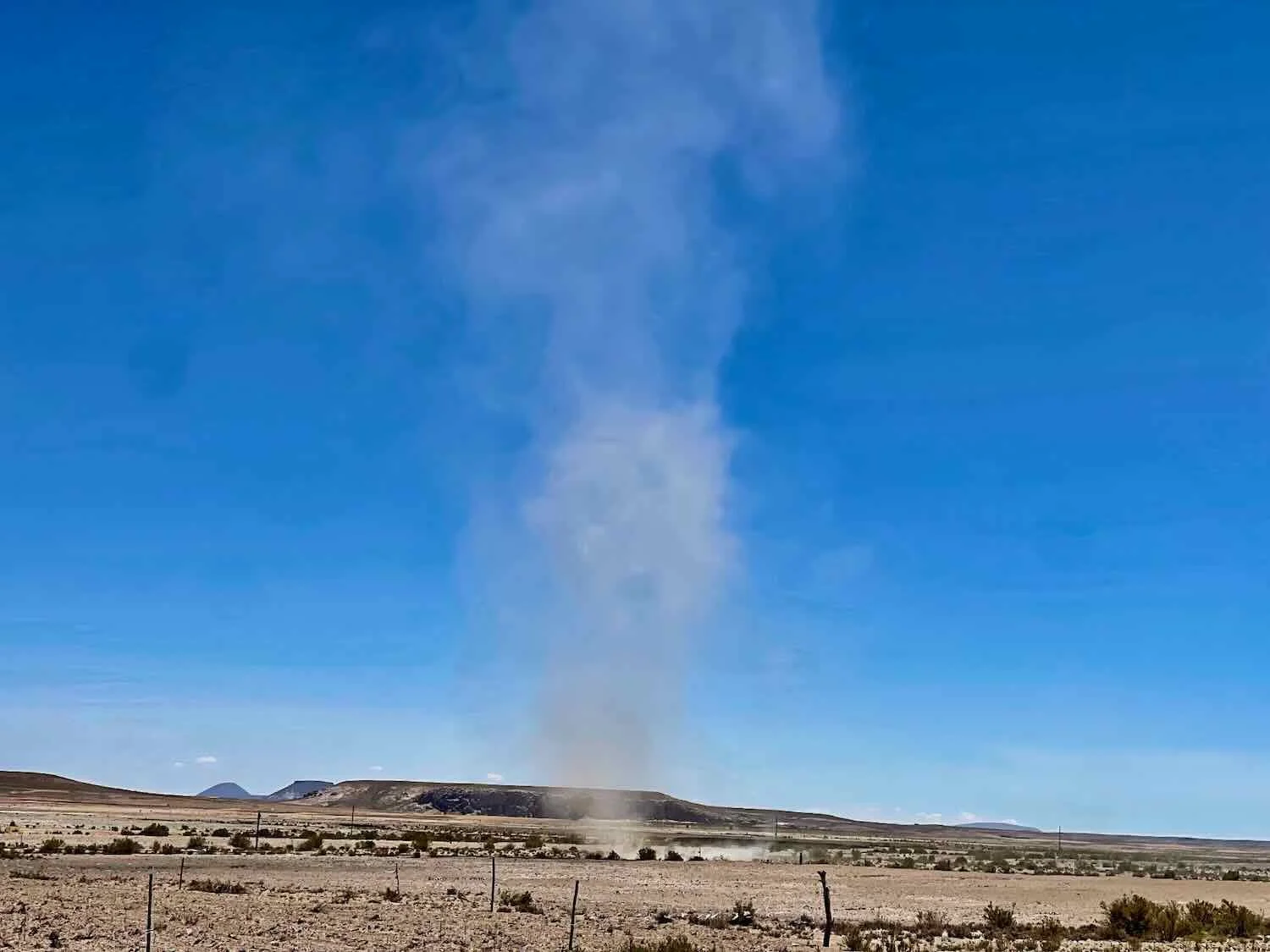 After passing through Río Mulato we continued cycling through open farmland. Often the wind would swirl the sand into dust devils that would send brown columns climbing hundreds of feet into the sky. N of Rio Mulato, Potosí Department, Bolivia. Copyright © 2019-2025 Pedals and Puffins.