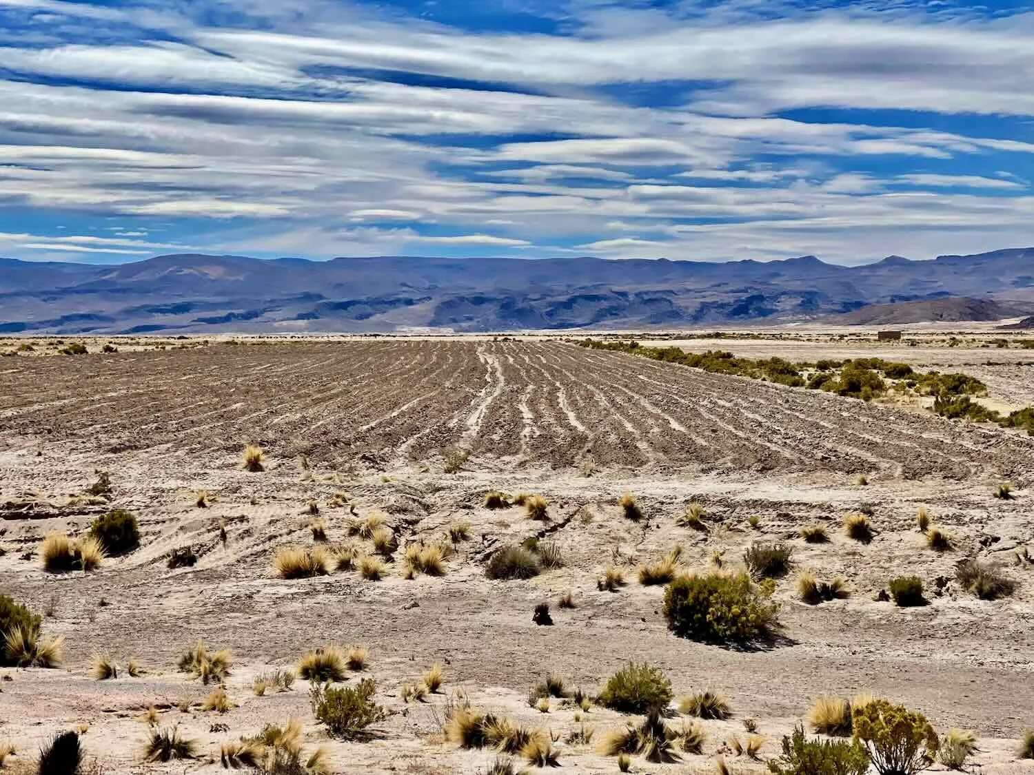 We didn’t have a specific camping spot that we were aiming for that evening. So as the afternoon lengthened, we started looking for a suitable place to pitch our tent. Unfortunately, by that point we had entered a region that was very flat, and blanketed with plowed fields destined to be planted with quinoa. Before long it was clear that we would have a very hard time finding a spot for our tent.