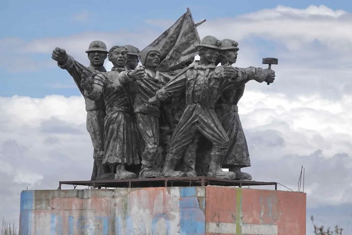 Another monument to the Battle of Aroma (mentioned above) stood boldly in the center of the highway. Calamarca, La Paz Department, Bolivia. Copyright © 2019-2025 Pedals and Puffins.