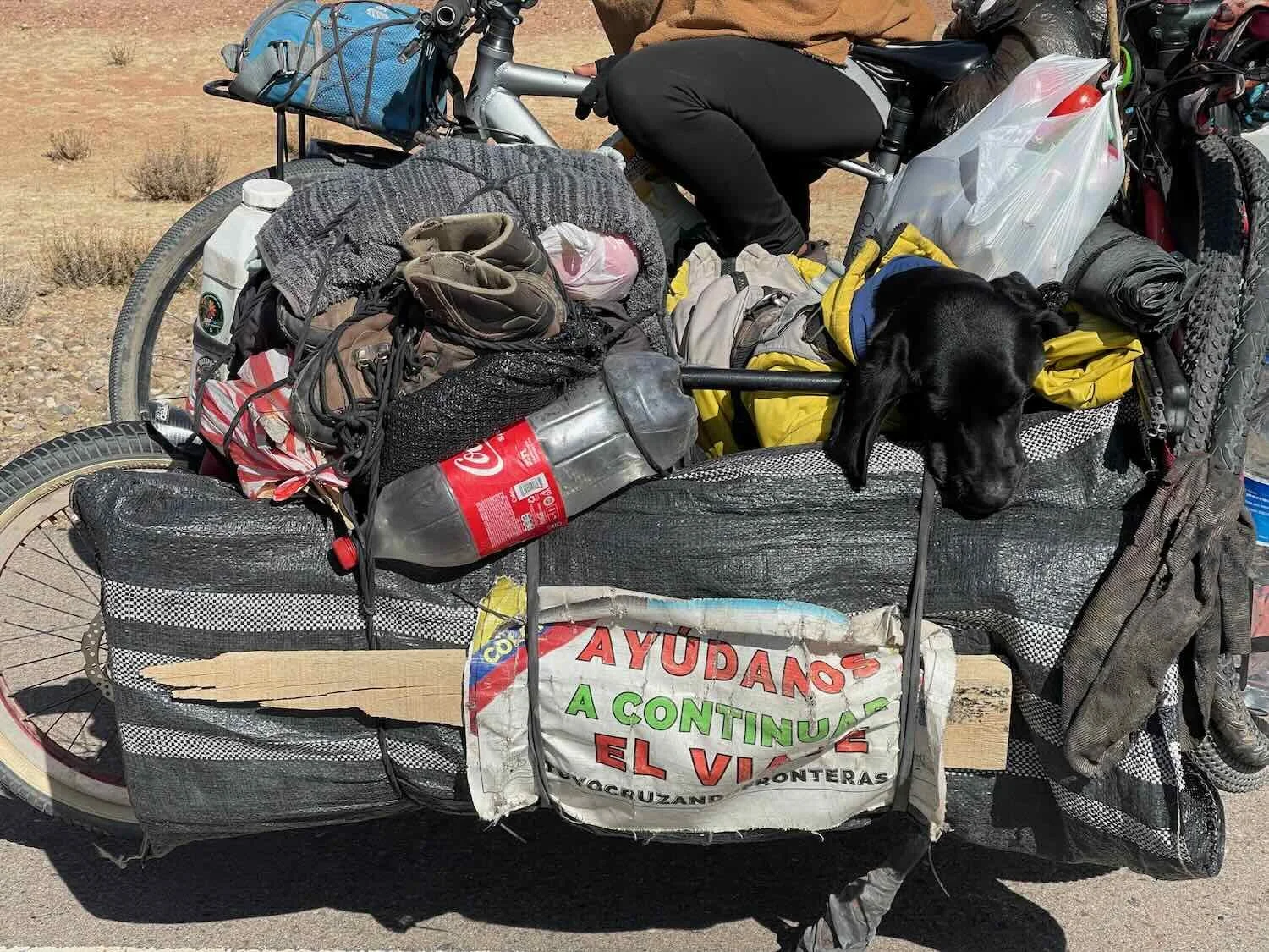 To our amazement, Dídier was carrying a dog in his bicycle trailer - the fourth person we had seen traveling by bicycle with a dog since entering Bolivia! The dog was pretty big, and might have seemed heavy for bicycle travel. However, given the sizable load of other gear that Dídier was hauling in that trailer, perhaps the dog’s weight wasn’t that much of a factor. N of Huacoma, Potosí Department, Bolivia. Copyright © 2019-2025 Pedals and Puffins.