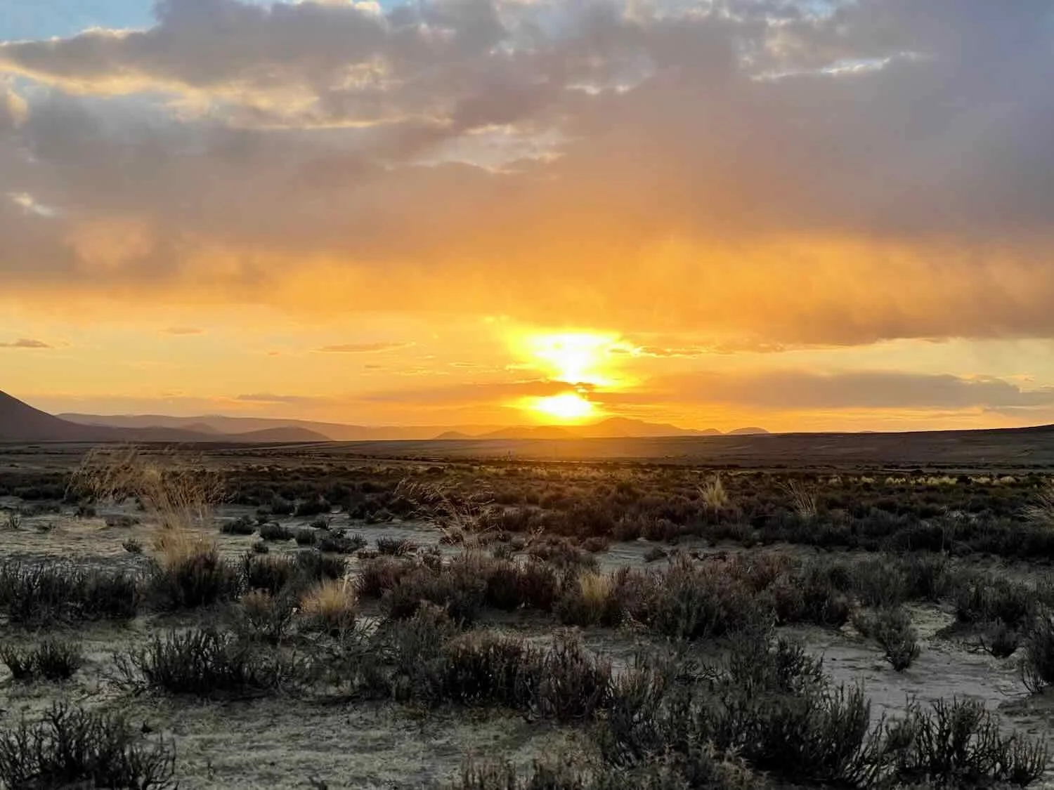 Sunset over the altiplano grasslands, as seen from our campsite near the quinoa fields. N of Río Mulato, Potosí Department, Bolivia. Copyright © 2019-2025 Pedals and Puffins.