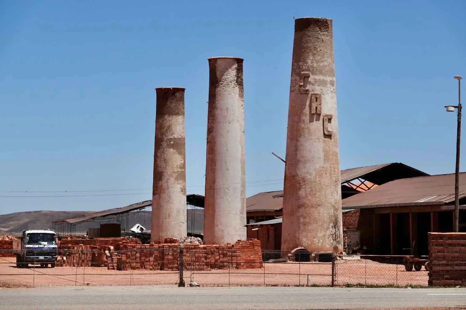 A row of smoke stacks marked one industrial site along our route, which produced the terracotta bricks used for many homes and other buildings in the area. N of Oruro, Oruro Department, Bolivia. Copyright © 2019-2025 Pedals and Puffins.
