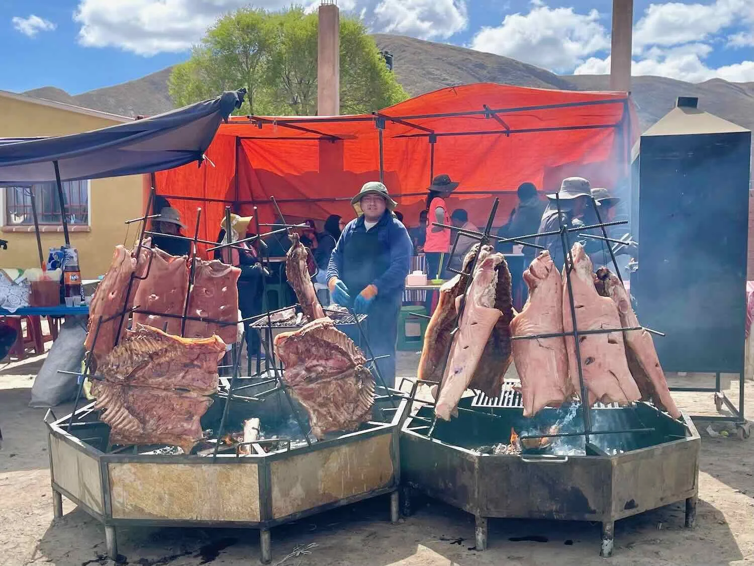 With all the people crowding the market, food vendors did a brisk business. This guy was cooking up a mountain of meat in anticipation of the afternoon rush. This was another division of labor by gender - grilling was almost exclusively a job for men (while women served the tables and/or cooked over a stove). Challapata, Oruro Department, Bolivia. Copyright © 2019-2025 Pedals and Puffins.