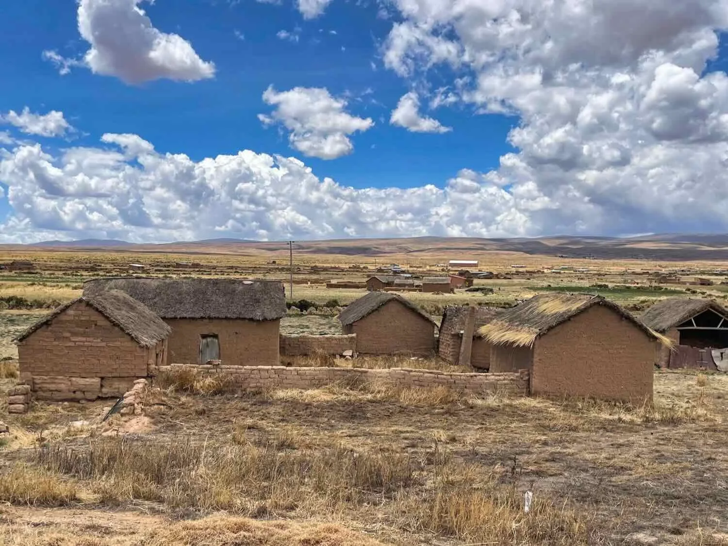 Away from the villages, scattered homes and farm buildings were often still built from traditional materials like mud bricks and thatched roofs. Near Konani, La Paz Department, Bolivia. Copyright © 2019-2025 Pedals and Puffins.