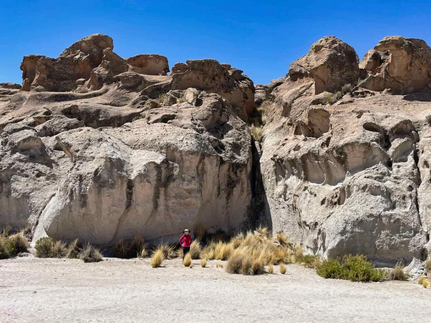 A couple of hours north of Río Mulato the flat grasslands were interrupted by an outcrop called the City of Rocks. It was a nice change of pace to see the impressive cliffs and swirling rock shapes, sculpted over the centuries by the constant winds. N of Río Mulato, Potosí Department, Bolivia. Copyright © 2019-2025 Pedals and Puffins.