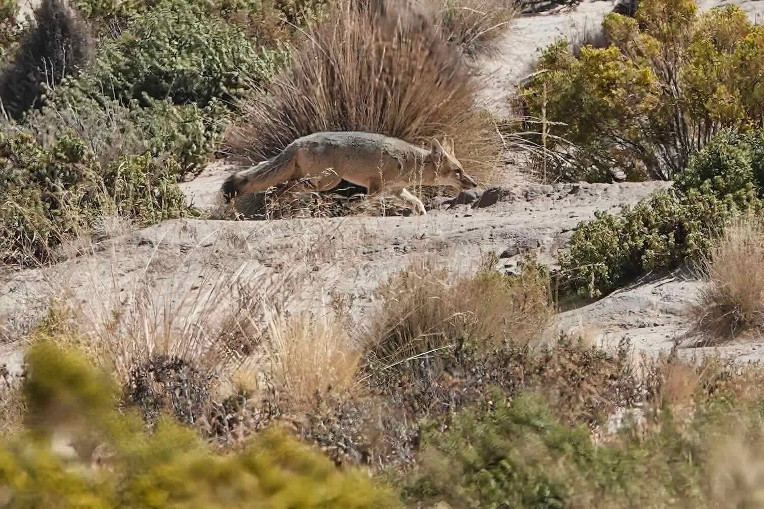Natural landscapes became much more scarce among the quinoa fields. But where there was native vegetation, there was wildlife. We spotted this Andean Fox (a.k.a., a culpeo) slinking among the patchy vegetation. N of Sevaruyo, Oruro Department, Bolivia. Copyright © 2019-2025 Pedals and Puffins.