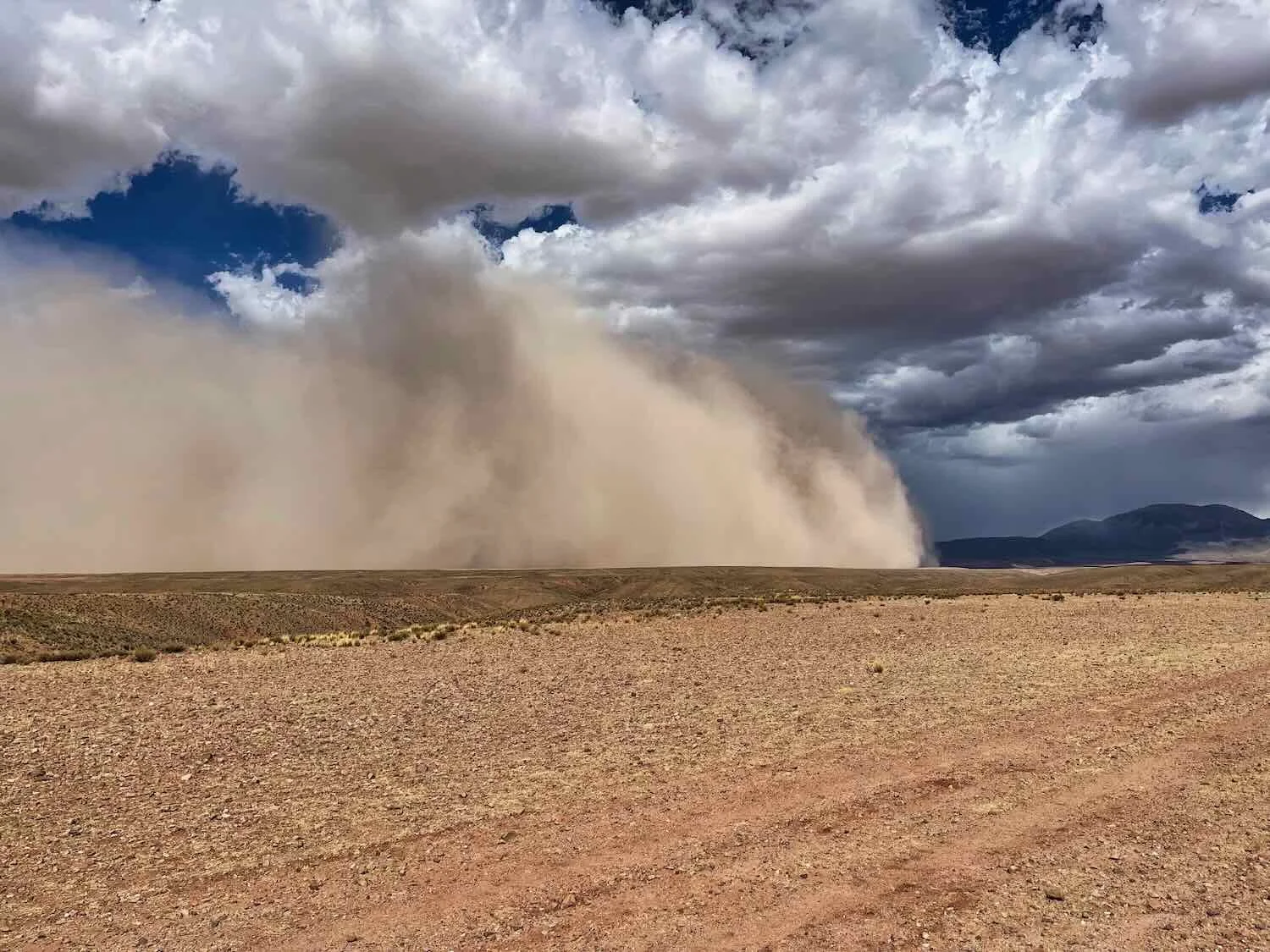 After following a dirt road that led up onto a secluded ridge, we were shocked by what we saw: just to our north a huge, dense, seething, brown wall of sand towered hundreds of meters high. And it was blowing towards us.
