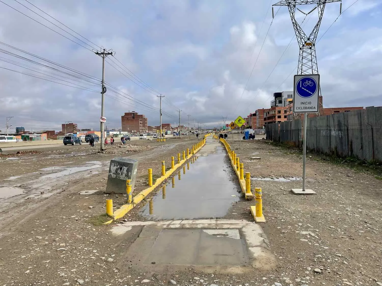 Our dream come true - a bicycle path that paralleled the muddy (under construction) highway through El Alto. It was such an improvement over cycling in the traffic that we didn’t really mind the puddles. El Alto, La Paz Department, Bolivia. Copyright © 2019-2025 Pedals and Puffins.