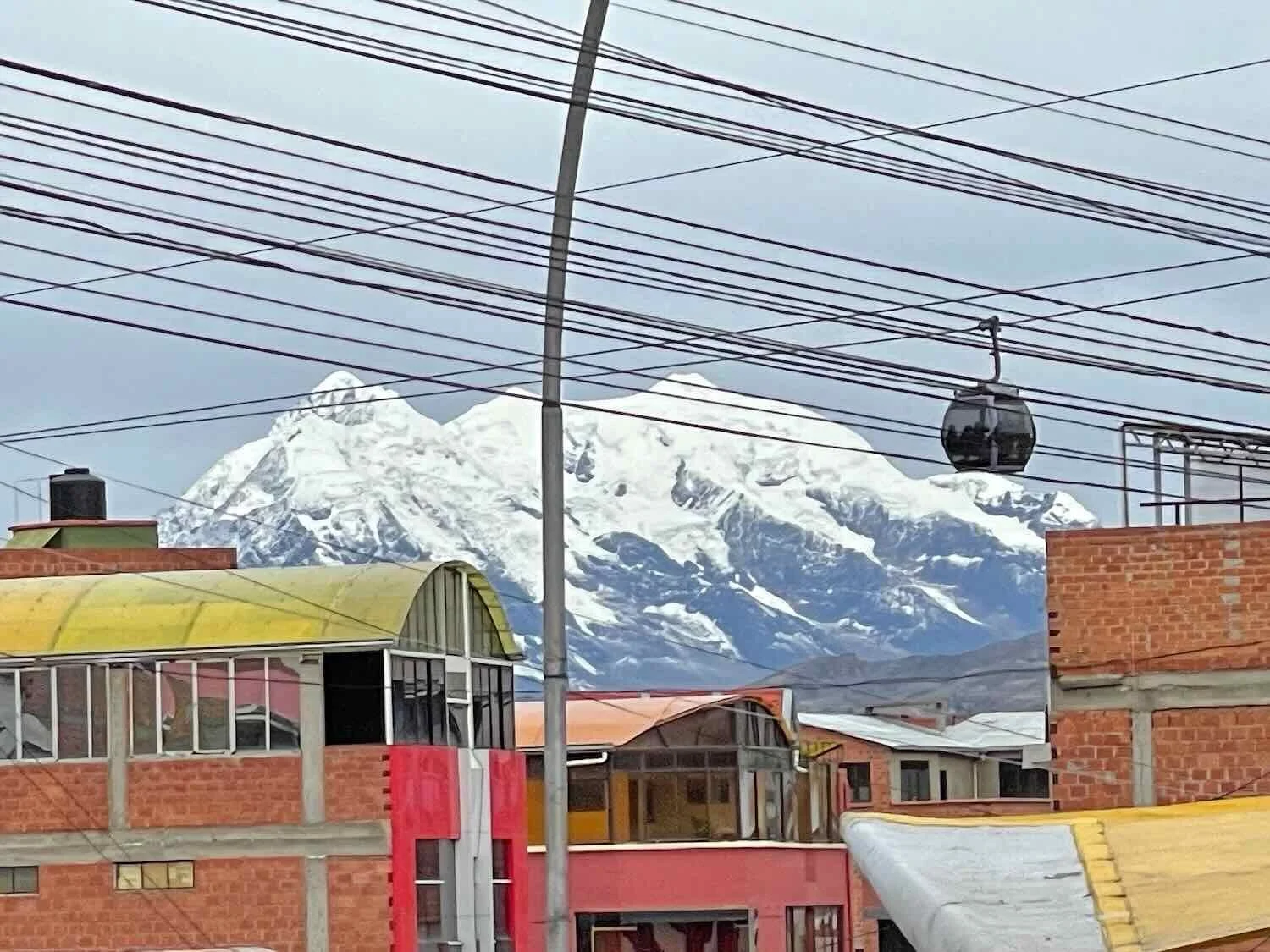 A view of the famous Illimani Mountain - an iconic symbol of La Paz. City Center, La Paz, Bolivia. Copyright © 2019-2025 Pedals and Puffins.
