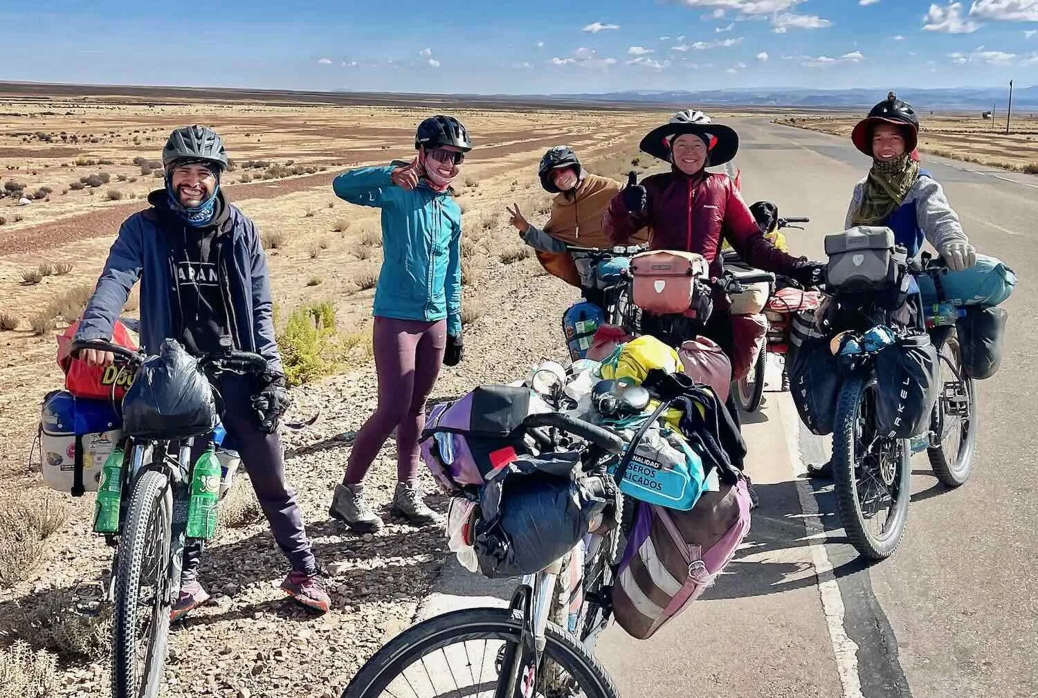 Before reaching Río Mulato we crossed paths with four cyclists from Colombia. (From left: Jairo, Carolina, Diana and Dídier). They were all heading south, with hopes of making it to Ushuaia, at the southern tip of Argentina. N of Huacoma, Potosí Department, Bolivia. Copyright © 2019-2025 Pedals and Puffins.