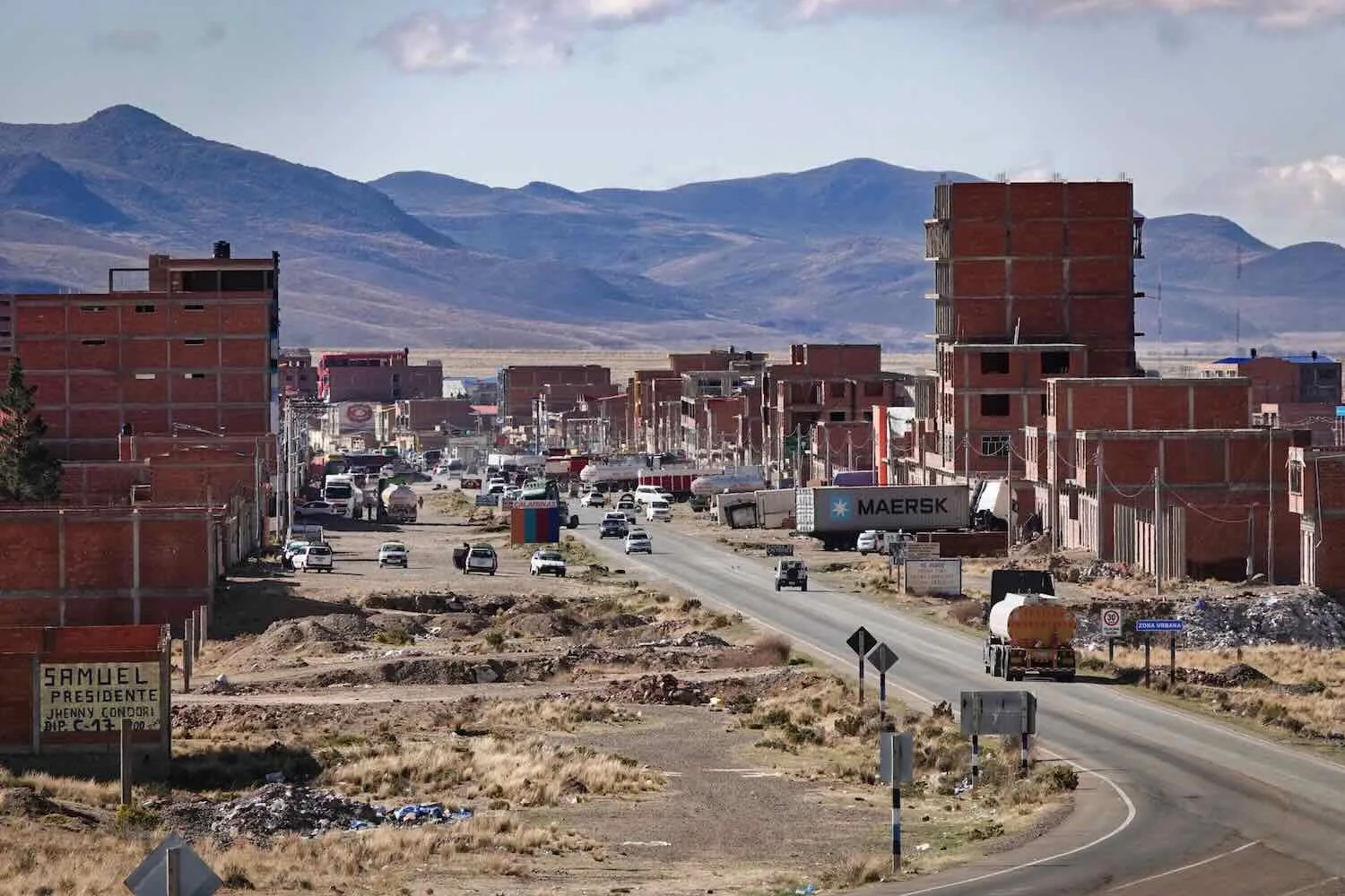 As we approached the outskirts of El Alto the density of houses steadily increased. Soon the landscape became fully urban, with a continuous line of buildings on both sides of the highway.