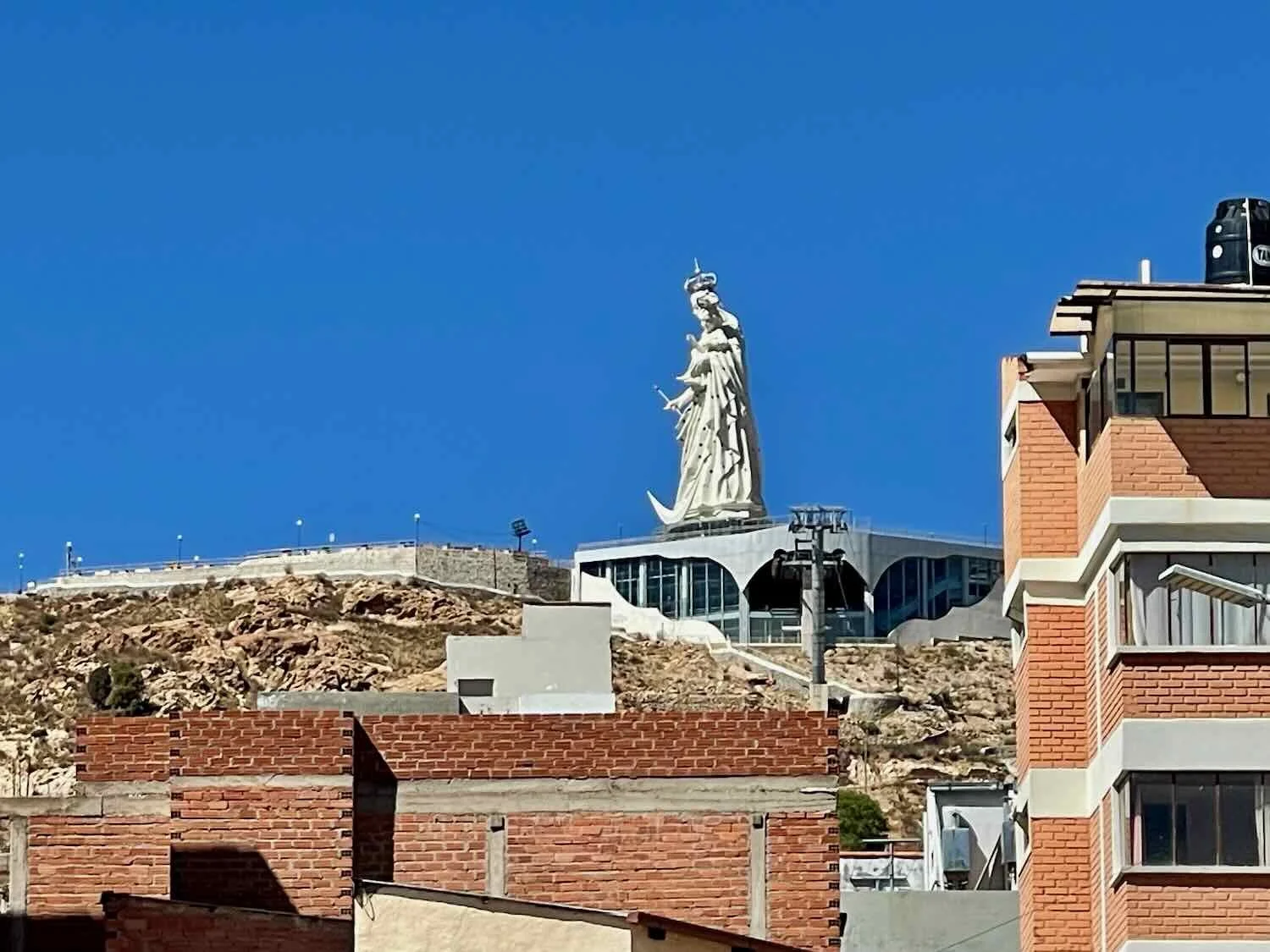 On a hill just west of the city center stood the Virgin of Socavón Monument, honoring the city’s patron saint. Socavón translates roughly to “mine shaft,” evoking the Virgin’s role as the protector of miners. City of Oruro, Bolivia. Copyright © 2019-2025 Pedals and Puffins.