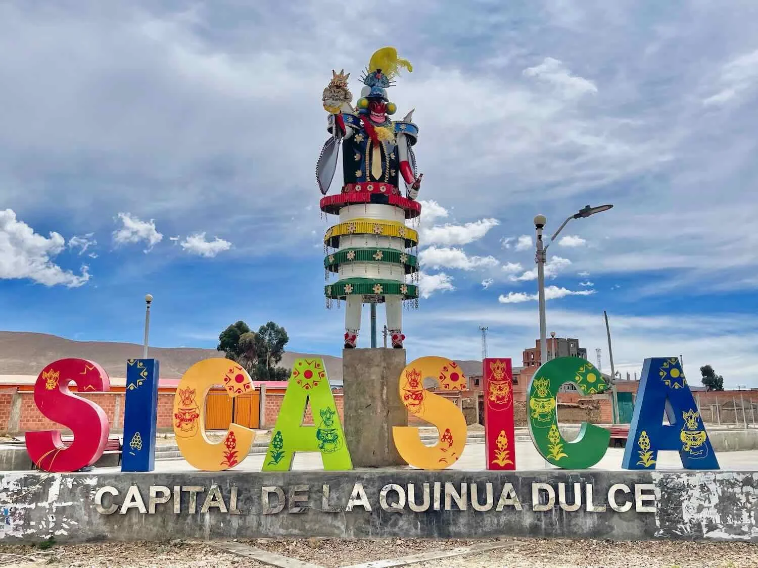 On the third day we stopped for lunch at the delightful plaza in the village of Sica Sica (pop. 3,085) - which proudly proclaimed itself to be the capital of Quinoa Dulce (sweet quinoa). “Sweet” varieties of quinoa (usually white or golden varieties) have lower concentrations of bitter compounds, making them more popular for human consumption. Sica Sica, La Paz Department, Bolivia. Copyright © 2019-2025 Pedals and Puffins.