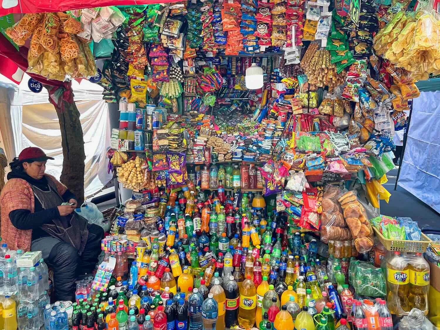 Every city block had large numbers of sidewalk vendors, whose stalls were typically crammed full of colorful snack and drink options. This lady was resident just outside of our apartment. She had almost every drink available, but forget it if you needed anymore than one or two bottles of the same thing. City Center, La Paz, Bolivia. Copyright © 2019-2025 Pedals and Puffins.