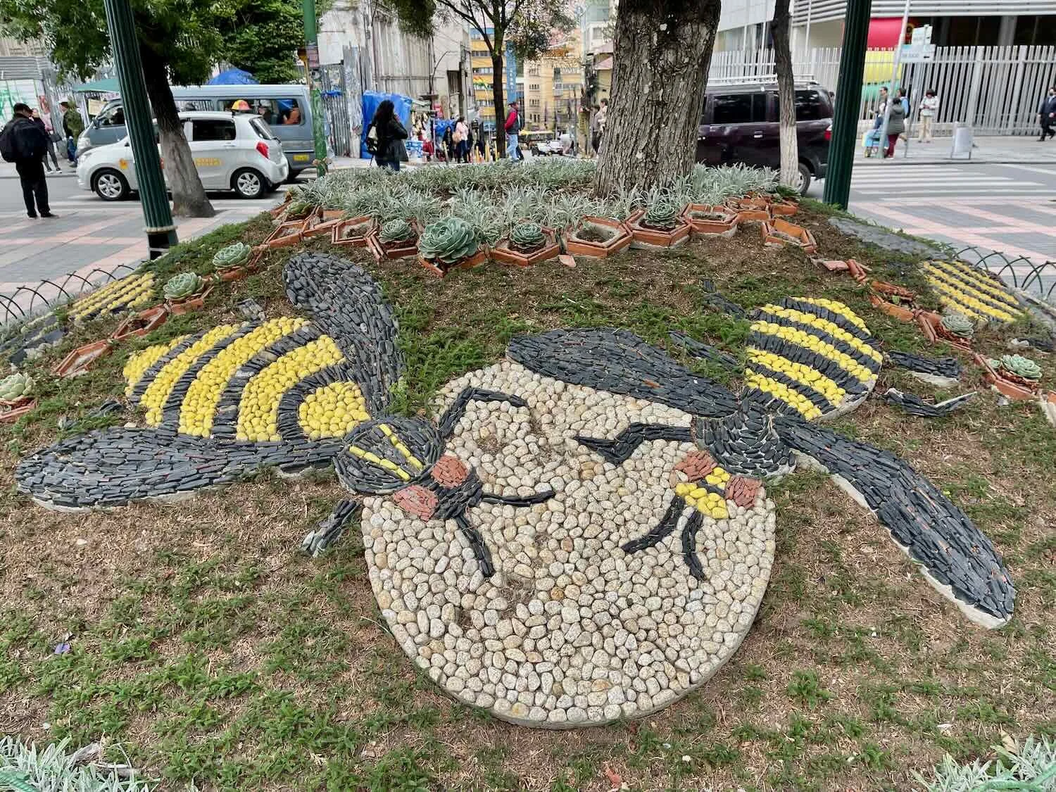 Another one of the stone mosaics depicted some busy bees. City Center, La Paz, Bolivia. Copyright © 2019-2025 Pedals and Puffins.