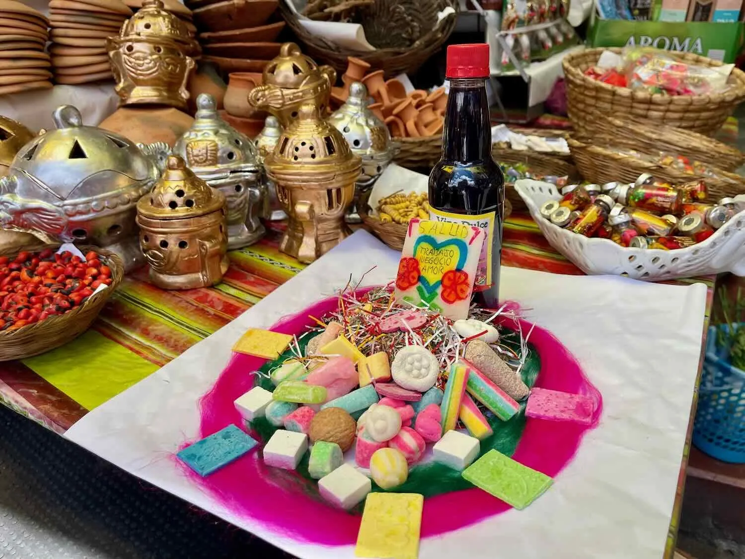 A traditional offering to Pachamama (Earth Mother). This one asked for health, work, business success, and love. To be effective, the offering had to include a range of sweets, and a bottle of alcohol (Pachamama’s favorites). Witch’s Market, City Center, La Paz, Bolivia. Witch’s Market, City Center, La Paz, Bolivia. Copyright © 2019-2025 Pedals and Puffins.