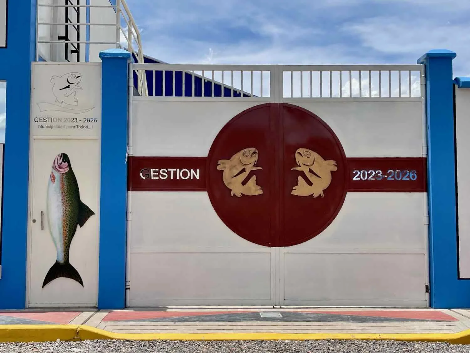 Gates to the administrative office for the town’s trout processing facility. Santa Lucía, Puno Department, Peru. Copyright © 2019-2026 Pedals and Puffins.