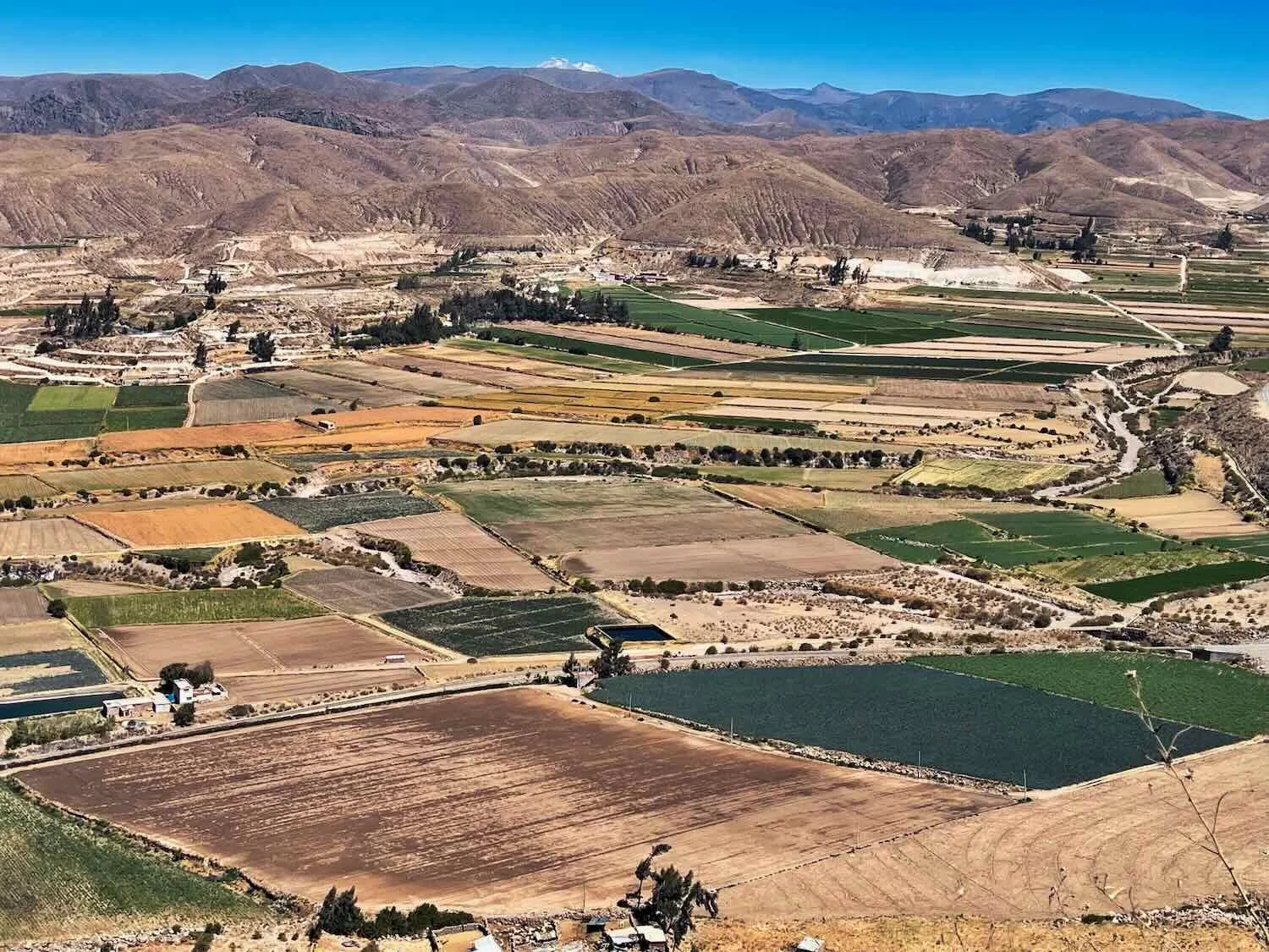 View across the irrigated valley just to our west. Village of Morro Verde, N of Yura, Arequipa Department, Peru. Copyright © 2019-2026 Pedals and Puffins.
