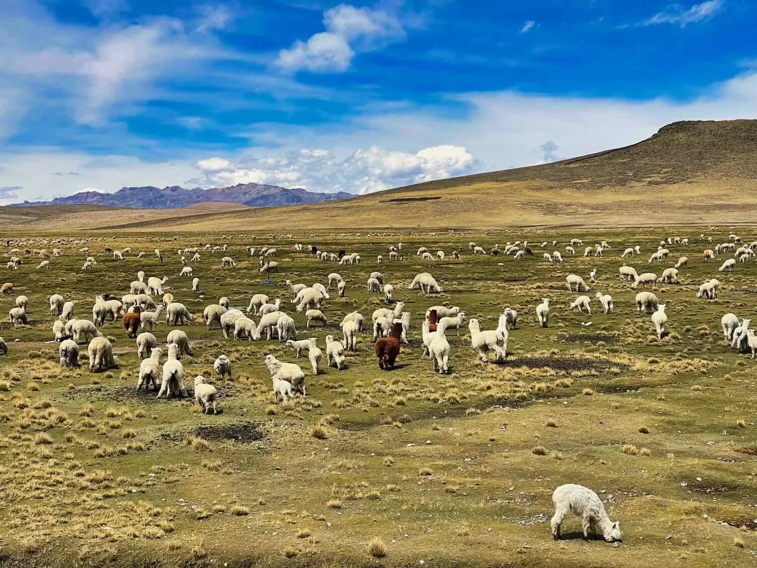 And there certainly were lots of alpacas. Alpacas are even more adapted to high-altitude living than llamas. Their blood has a higher concentration of hemoglobin, making it more efficient at transporting oxygen. NE of Imata, Arequipa Department, Peru. Copyright © 2019-2026 Pedals and Puffins.