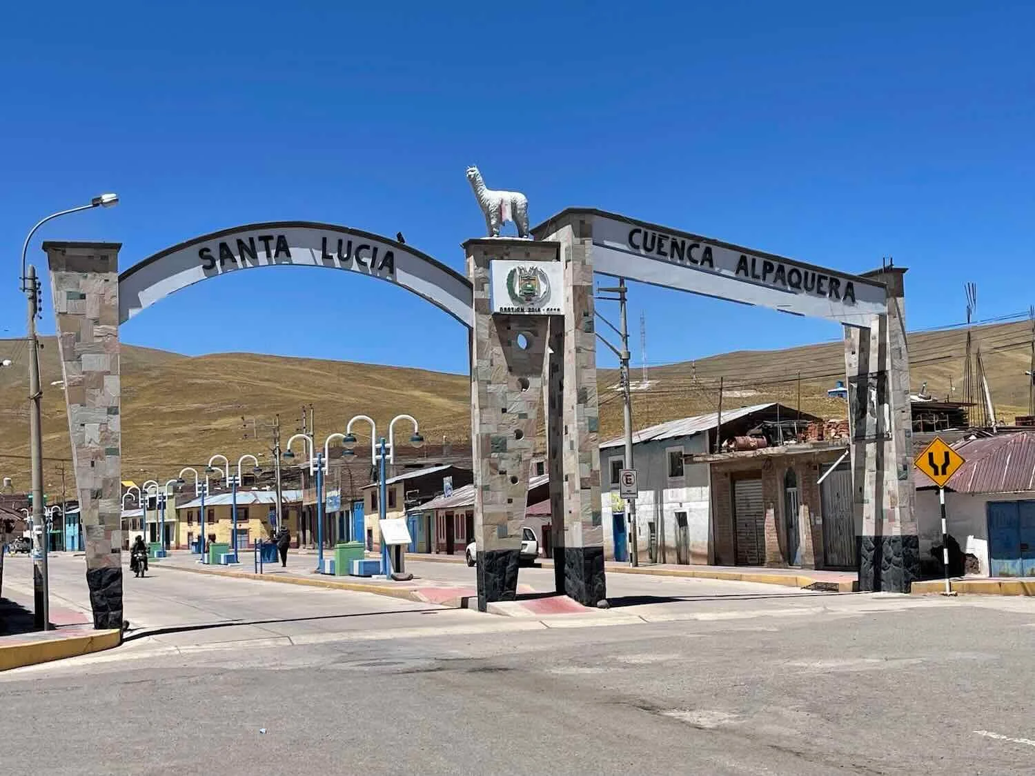 The south end of town was dubbed The Alpaca Basin (Cuenca Alpaquera), complete with fancy entrance gates and a glowing, white alpaca statue. This was a nod to the important role that alpaca ranching and wool production played in the town’s economy. Santa Lucía, Puno Department, Peru. Copyright © 2019-2026 Pedals and Puffins.