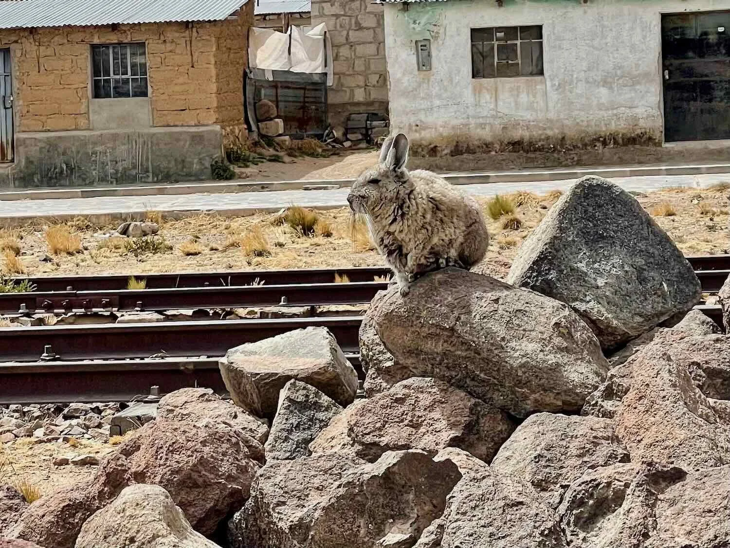 While the main purpose of the layover was to rest, we did go for a walk around “town.” To our surprise we were rewarded with a close-up sighting of a mountain viscacha - a hardy, rabbit-like rodent found only in the highest mountains (above 10,000 ft or 3,000 m), all the way up to the permanent snow line. We had actually been on the lookout for this species since entering the altiplano, but hadn’t seen one yet. So it was a special treat when we spotted one sitting on top of a pile of rocks, in a vacant lot.