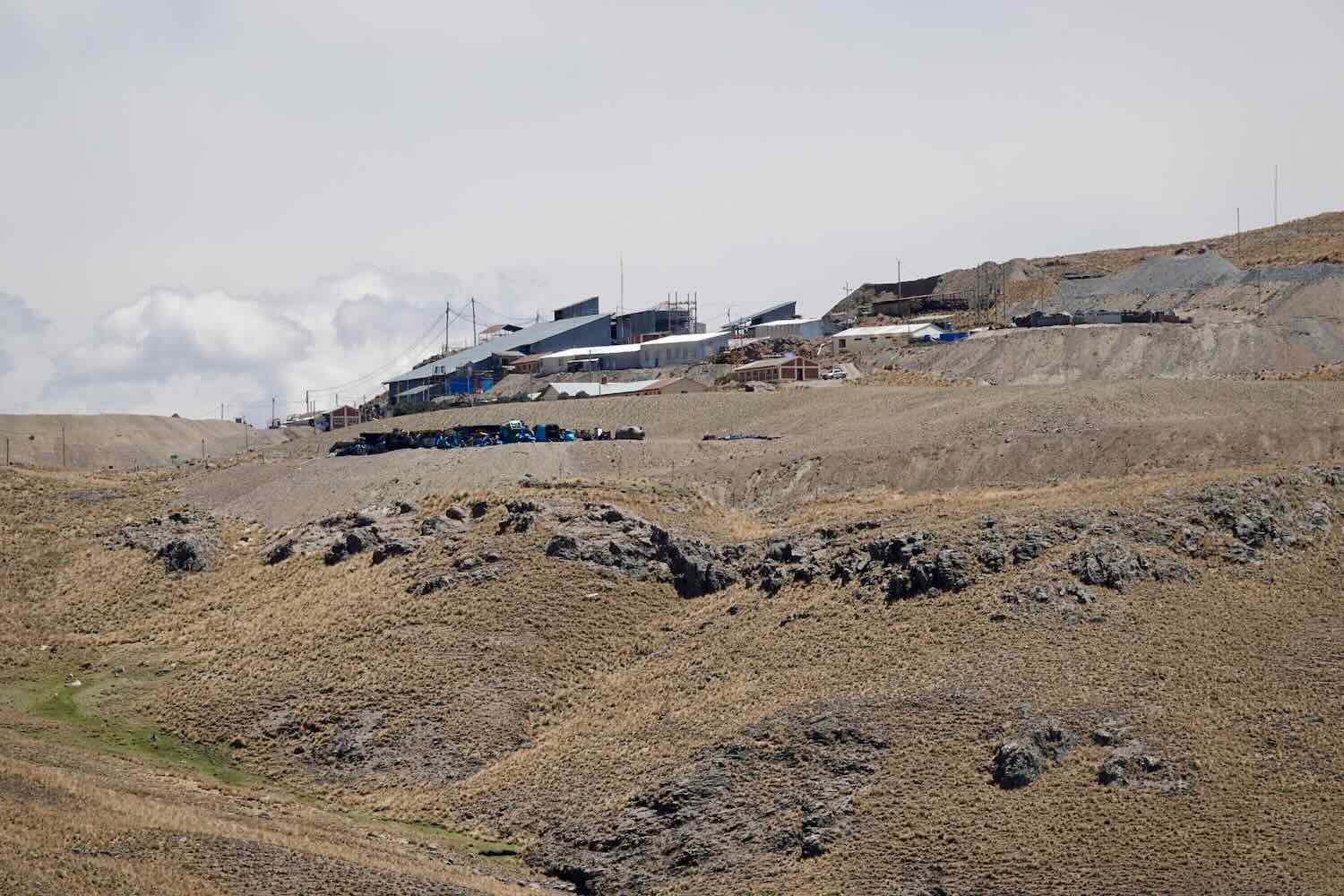 A couple of hours into the ride we spotted a large complex of buildings high on a ridge. It turned out to be the Tacaza Copper Mine, one of the two, big mines near Santa Lucía. Puno Department, Peru. Copyright © 2019-2026 Pedals and Puffins.