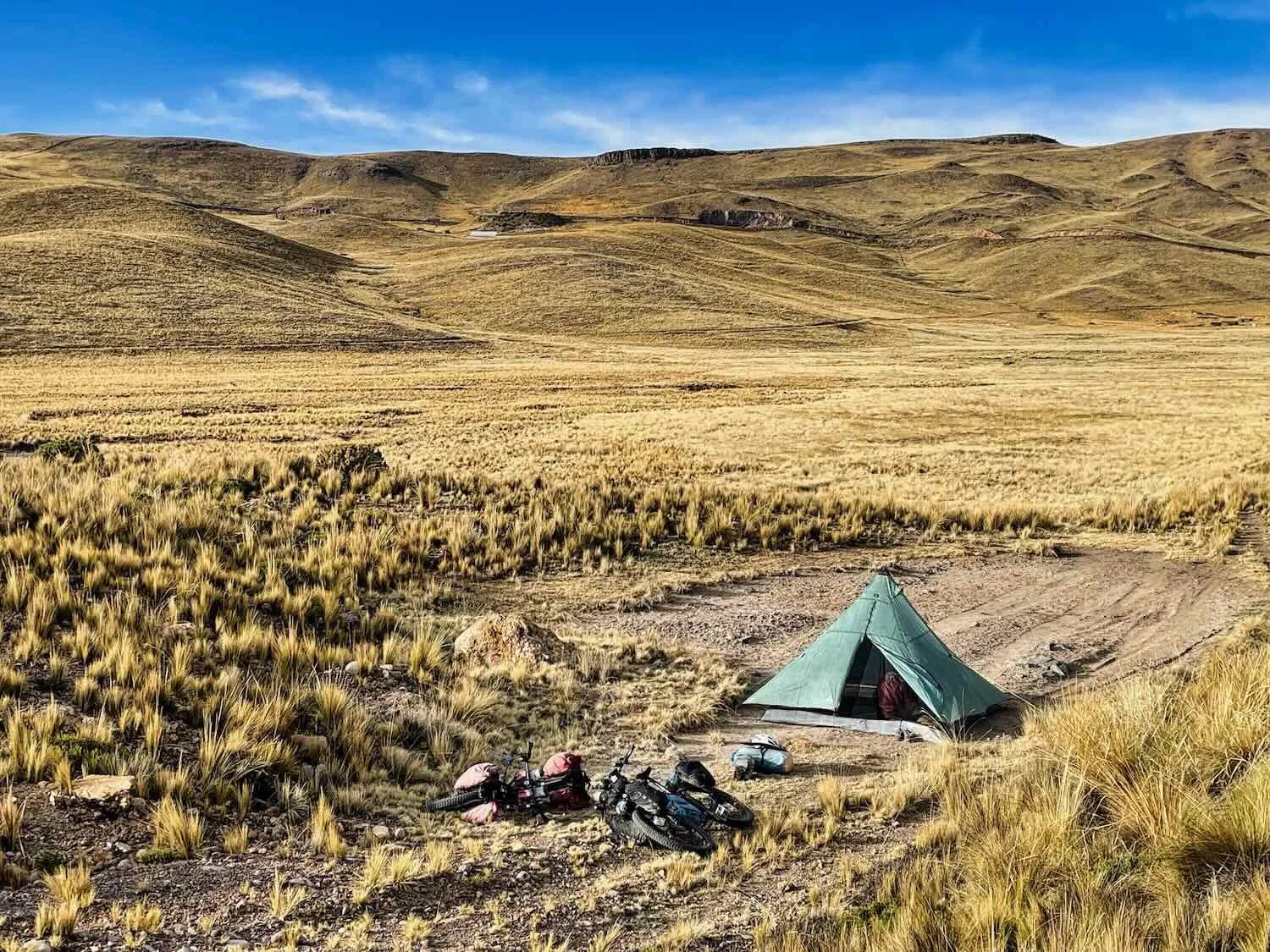 Our campsite in the grasslands around Lake Lagunillas, Puno Department, Peru. Copyright © 2019-2026 Pedals and Puffins.