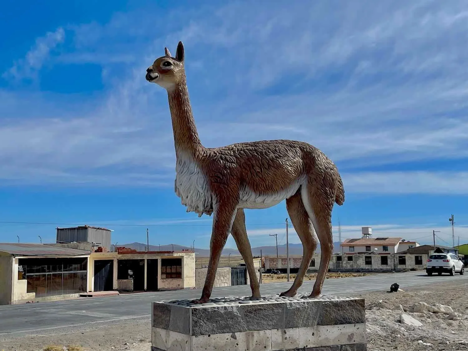 Vicuña statue. Imata, Arequipa Department, Peru. Copyright © 2019-2026 Pedals and Puffins.