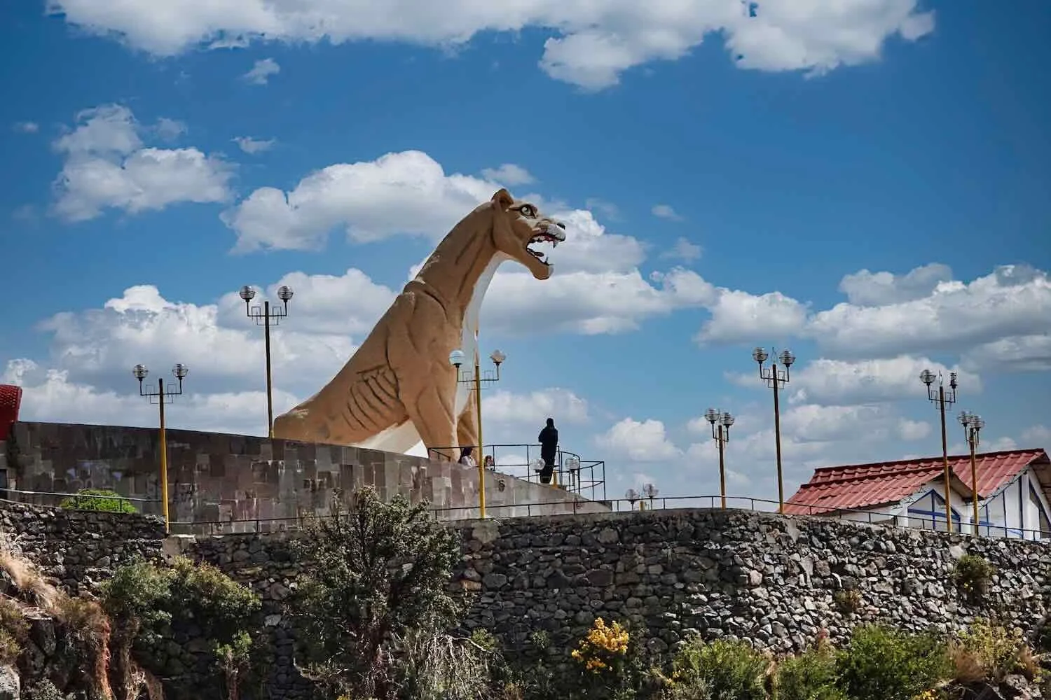 Near the top of the escarpment above town, a giant puma statue looked out over the valley below. City of Puno, Peru. Copyright © 2019-2026 Pedals and Puffins.