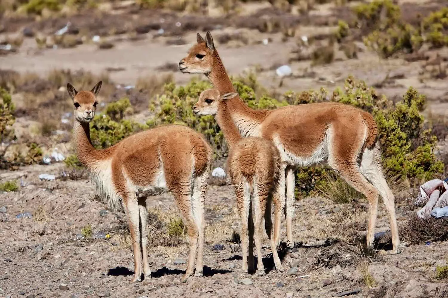 A group of bright-eyed, young vicuñas. Pampa Cañahuas National Reserve, W of Patahuasi, Arequipa Department, Peru. Copyright © 2019-2026 Pedals and Puffins.