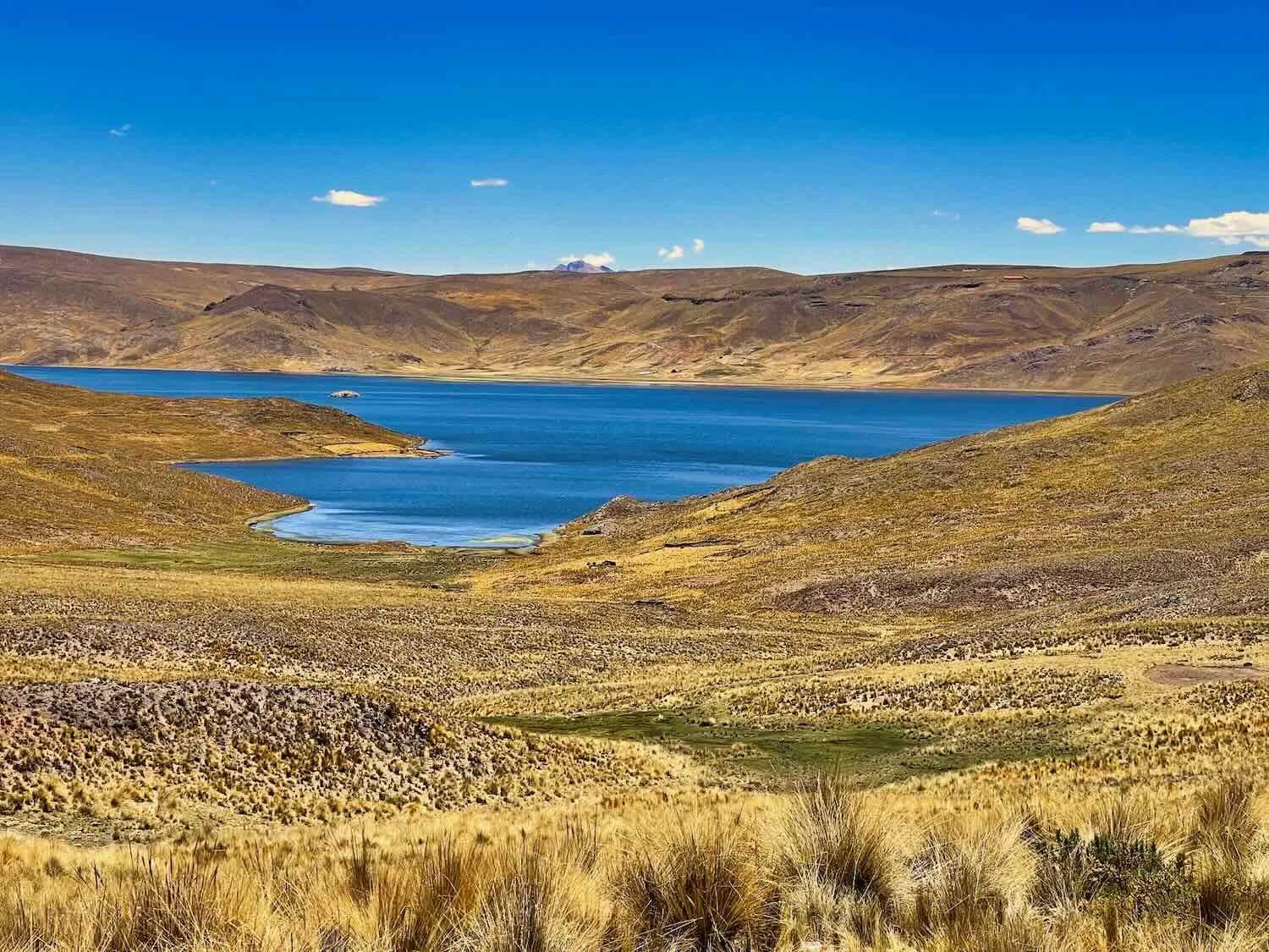 The shimmering, bright blue of Lake Lagunillas high on the remote altiplano took our breath away (or maybe that was the thin air at this altitude…). Puno Department, Peru. Copyright © 2019-2026 Pedals and Puffins.