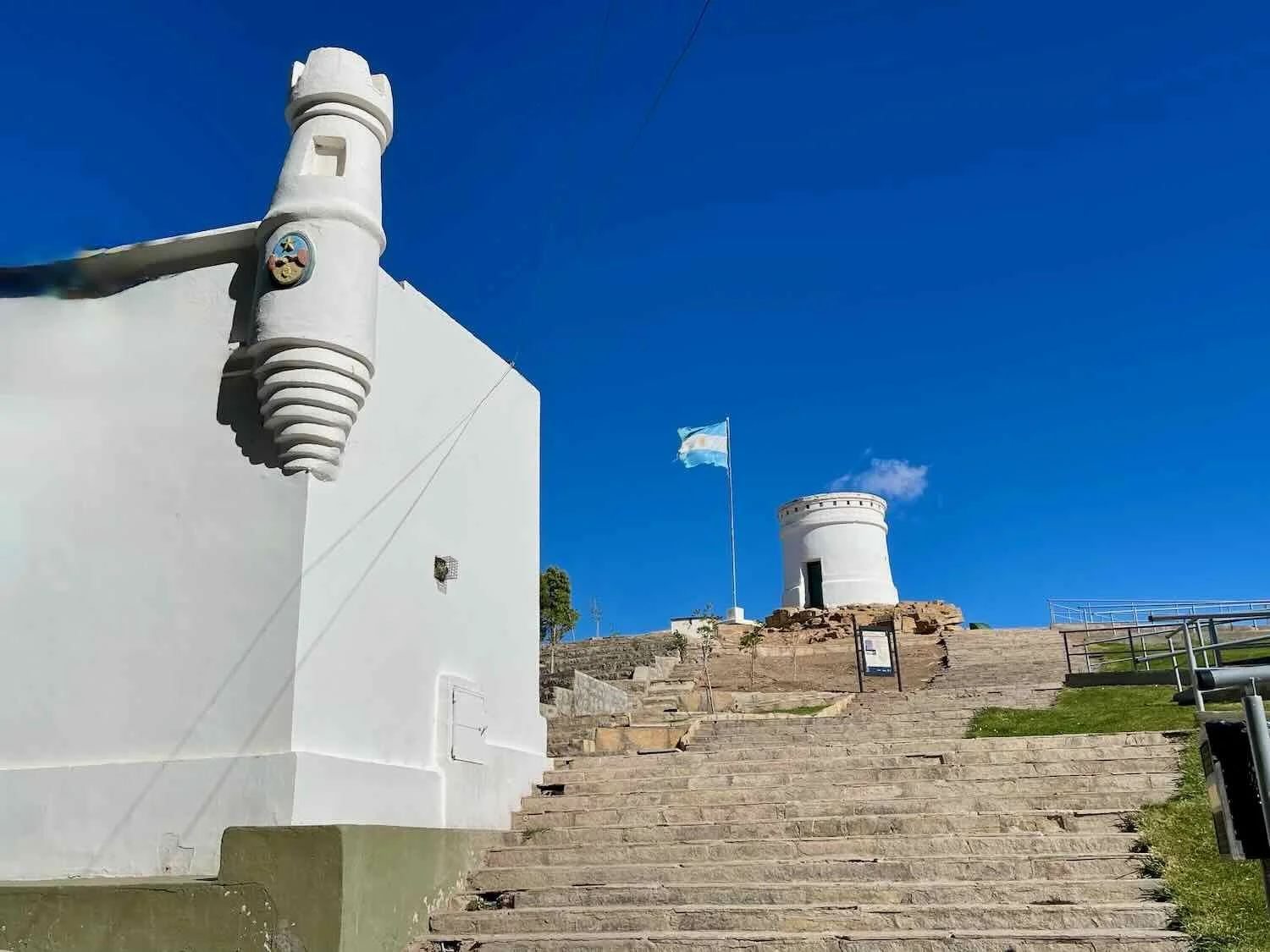 Chos Malal was originally established as a frontier fort to help police cattle rustling in the region. The restored tower of the fort sits high on a hill overlooking the river, while the lower fort building now houses the provincial museum. Paseo Costanero, Chos Malal, Neuquén, Argentina. Copyright © 2019-2025 Pedals and Puffins.