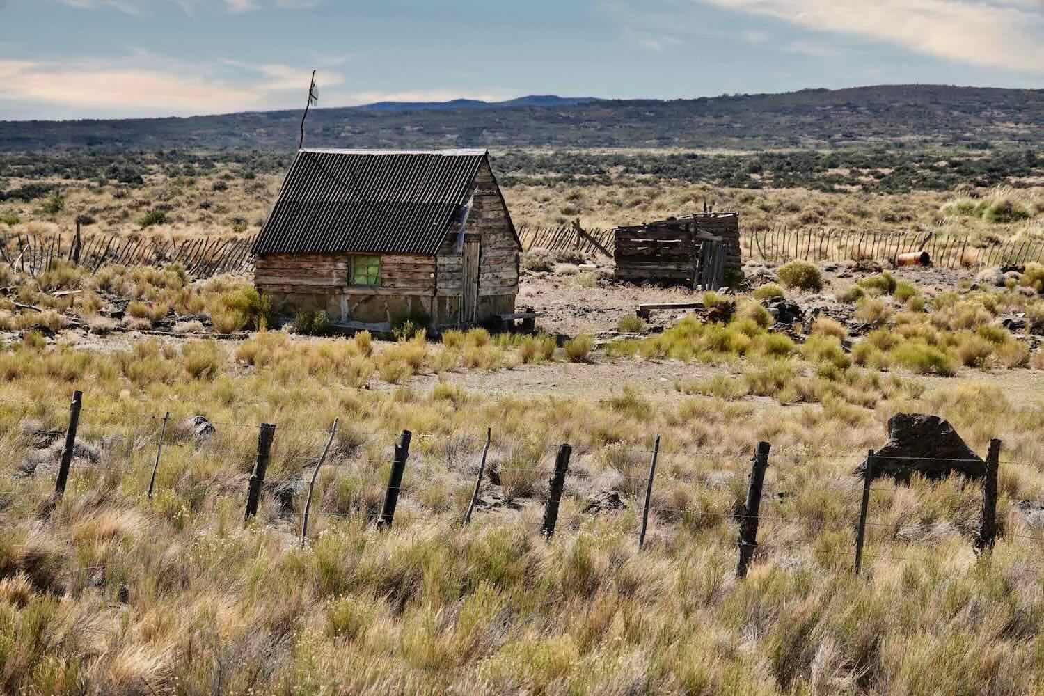A lonely homestead out-building, among the tufts of last year’s grass. Route 40, South of Las Lajas, Neuquén, Argentina. Copyright © 2019-2025 Pedals and Puffins.