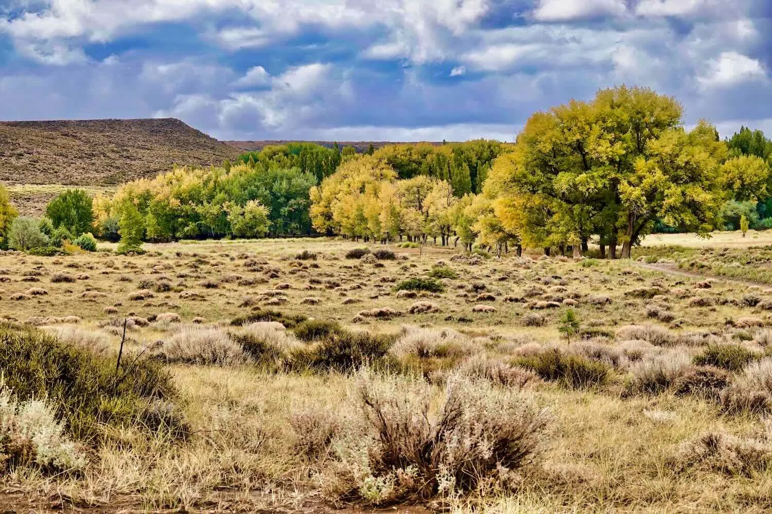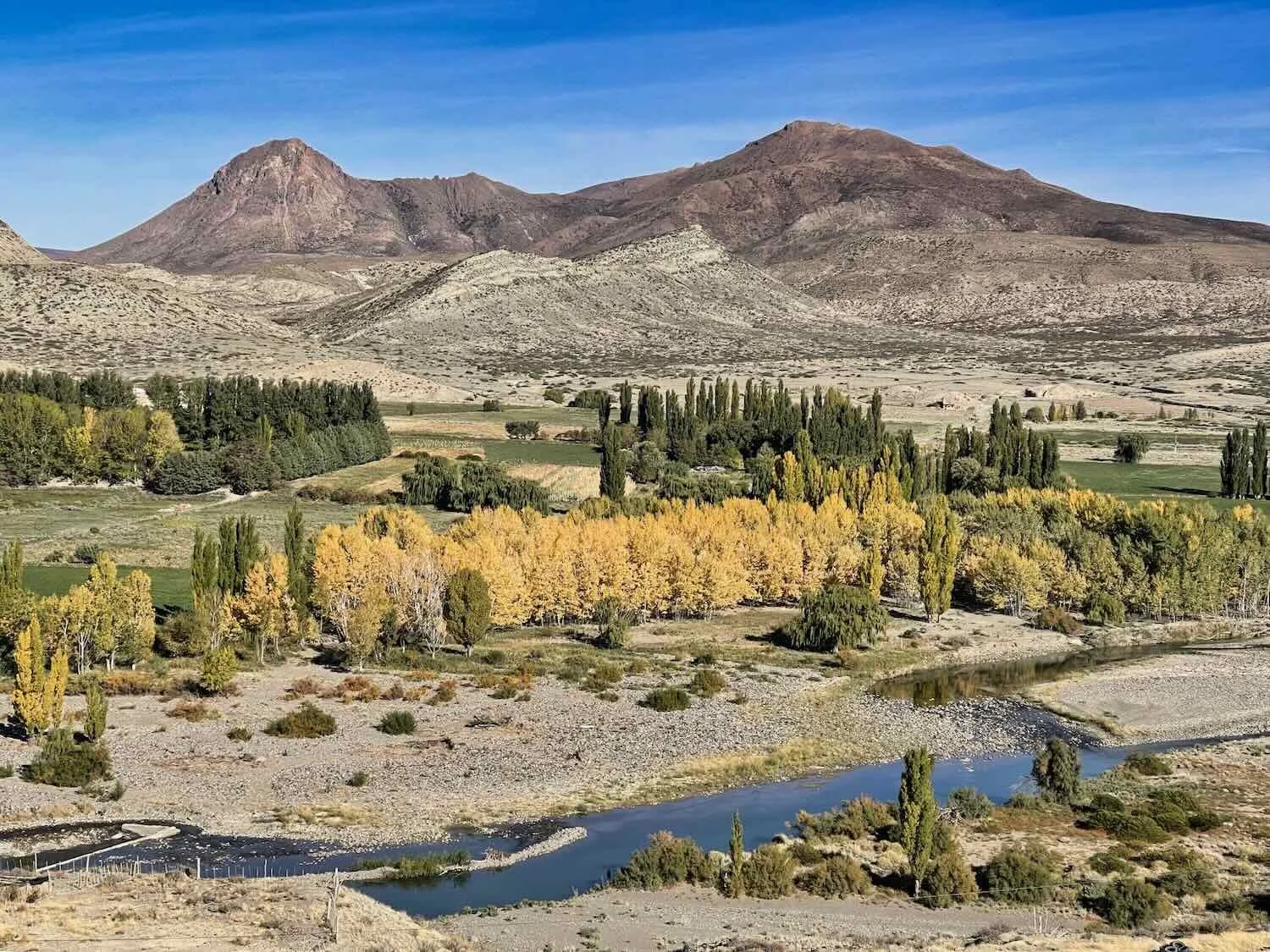 The changing leaves on the saffron-tinged cottonwoods along the Santo Domingo River were another reminder that autumn was approaching quickly. Route 40, South of Zapala, Neuquén, Argentina. Copyright © 2019-2025 Pedals and Puffin