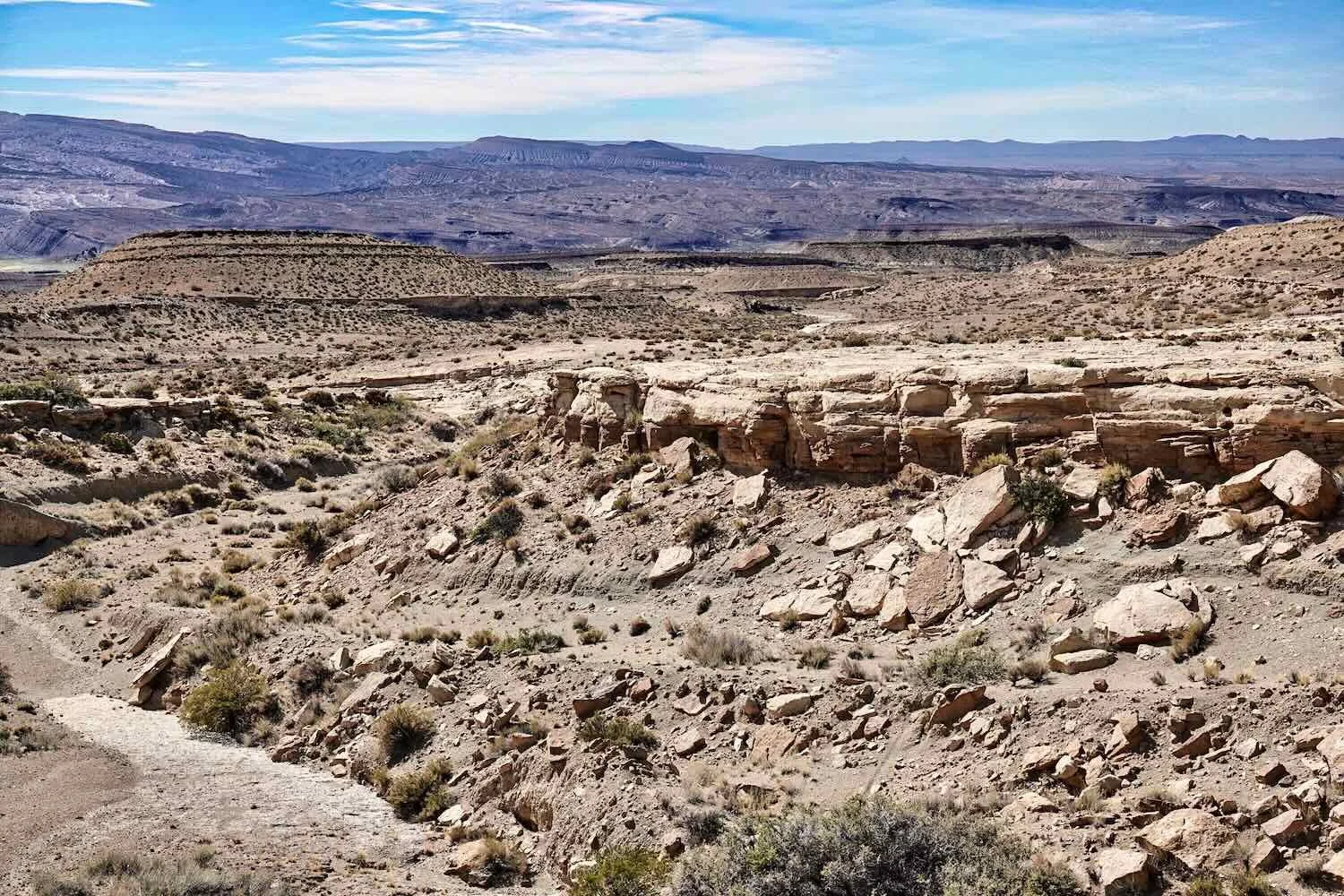 The final run into the town of Buta Ranquil began with a very long downhill off the plateau, landing us among rocky canyons and arroyos that reminded us of Utah or western Colorado. The extra topography created by the canyons was more interesting than the softly rounded mountains of the past few days. We enjoyed the change of scenery, which felt much more visually engaging.