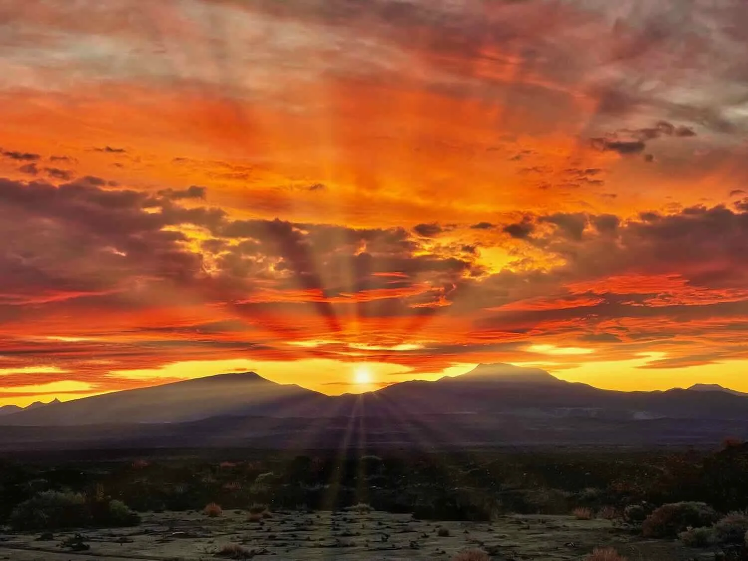 The sun dipping behind the mountain ridge to our west. Route 40, Salado River Valley, South of Chorriaca, Neuquén, Argentina. Copyright © 2019-2025 Pedals and Puffins.