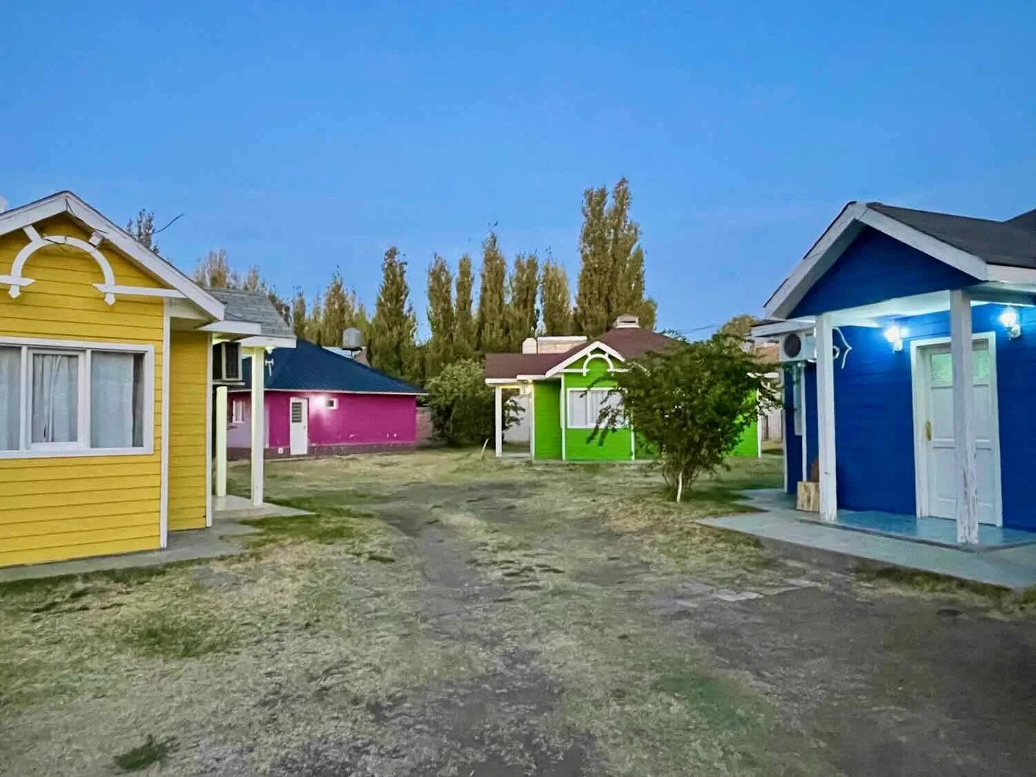The eye-catching colors of the rental cabins in Las Lajas. We stayed in the green one. Route 40, Las Lajas, Neuquén, Argentina. Copyright © 2019-2025 Pedals and Puffins.