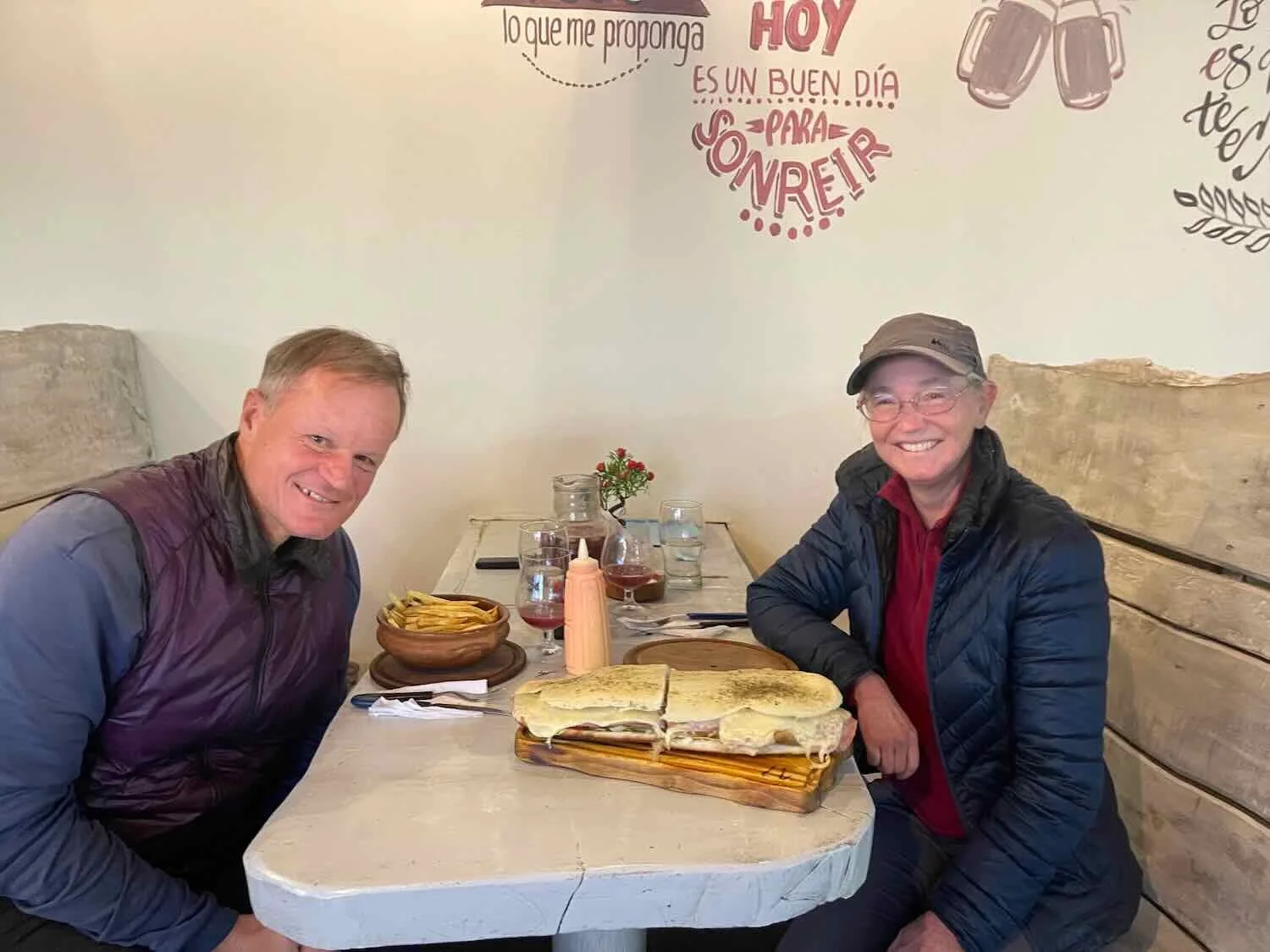 Given that Spanish isn’t our first language, it took us a while to be absolutely sure that we really understood what he was trying to tell us. After all, two hungry cyclists can put away a lot of food, so the last thing we wanted to do was under order during our first night in town. Yes, he assured us, it would be plenty. So we went ahead and ordered just one sandwich, plus a side of fries to share.