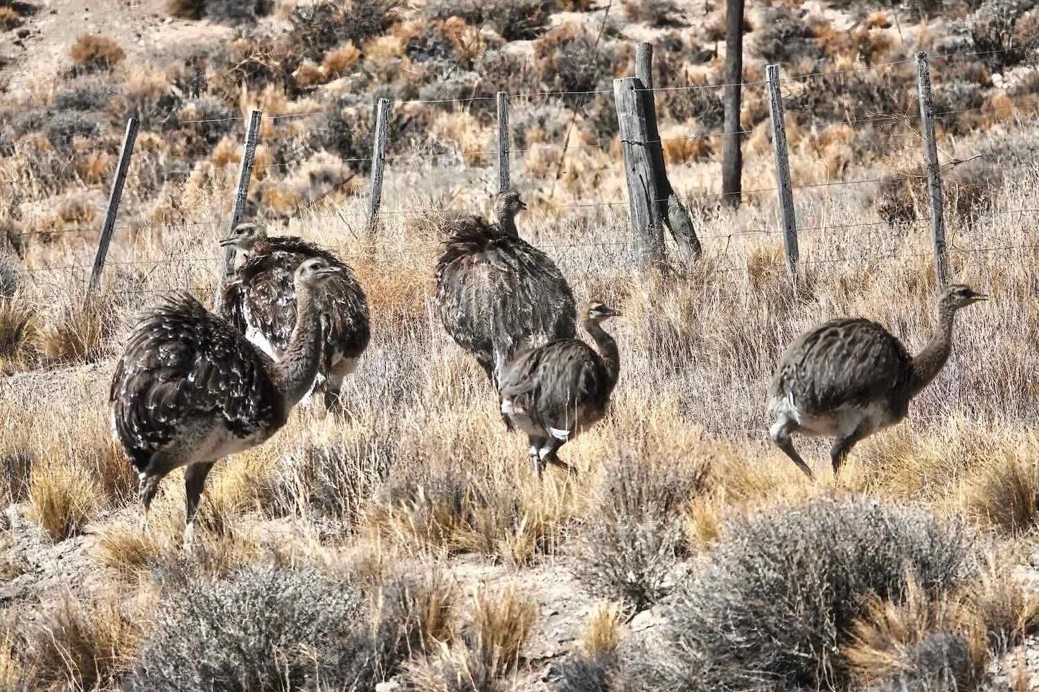 Groups of lesser rheas could still be encountered once in a while, though also in reduced numbers. The rheas can coexist with ranching better than the guanacos, but still suffer from poaching and collection of their eggs. The rheas that we saw along the route north of Junín de los Andes were extremely wary of people, and took off at a very fast gallop when PedalingGuy tried to get their photo. They didn’t stop running until they were a mere speck on the horizon.