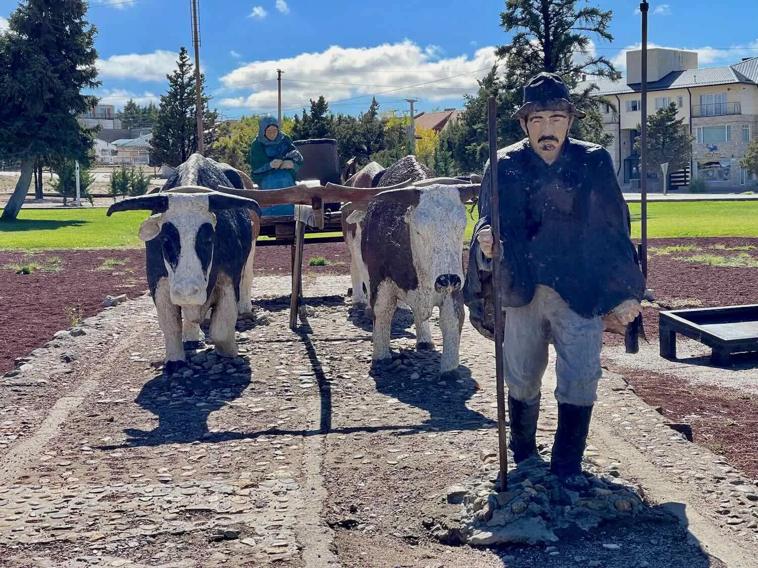 A statue within a big traffic circle honored the first European settlers in the area. A man in gaucho dress led a team pulling a classic ox cart, carrying his wife and child. Their stoic appearance conveyed the fabled strength of spirit attributed to early pioneers. Not too different from the pioneers who settled the American West. Zapala, Neuquén, Argentina. Copyright © 2019-2025 Pedals and Puffins.