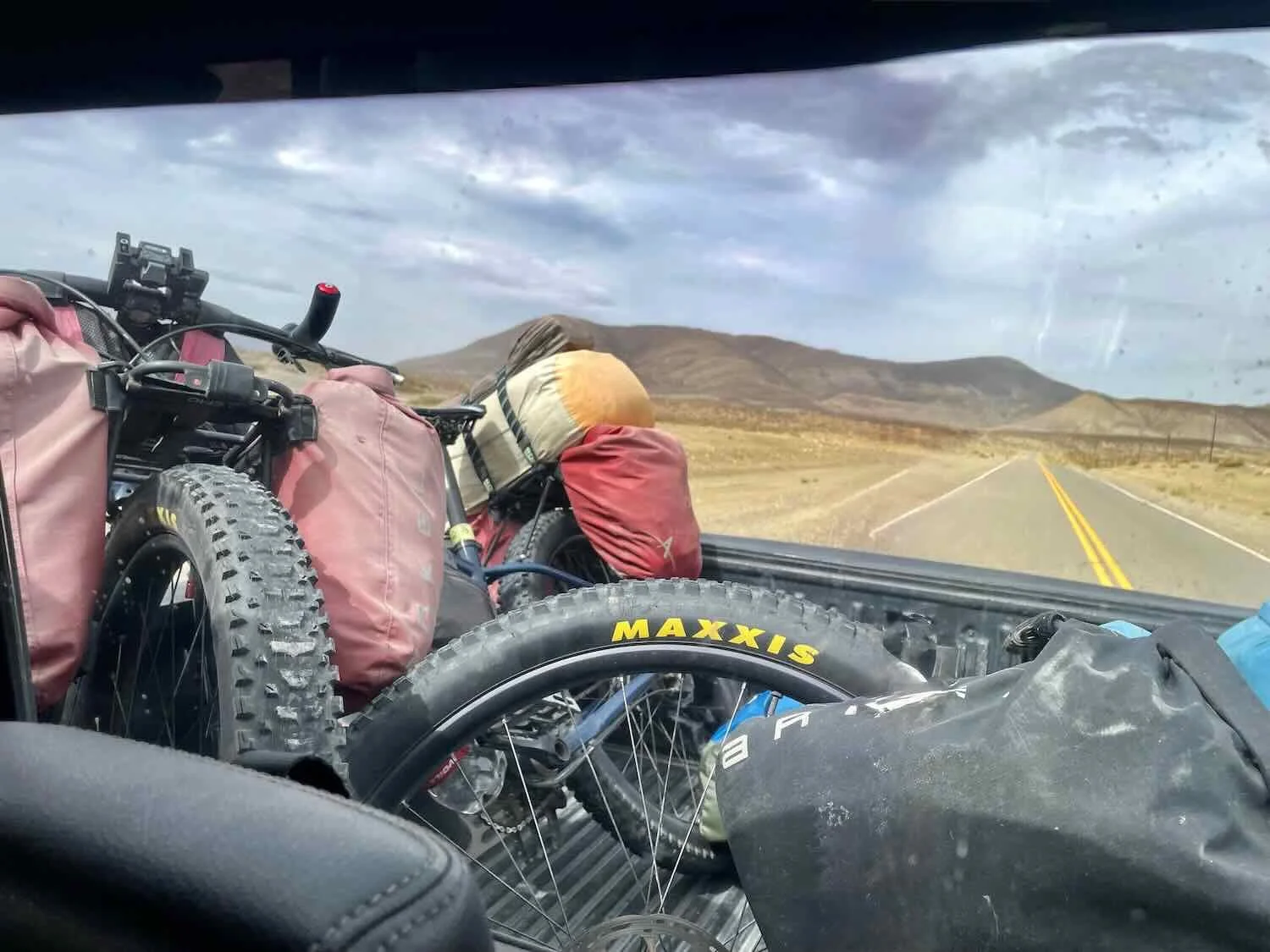 Our bikes, piled in the back of our saviors’ pickup truck. Route 40, South of Chos Malal, Neuquén, Argentina. Copyright © 2019-2025 Pedals and Puffins.
