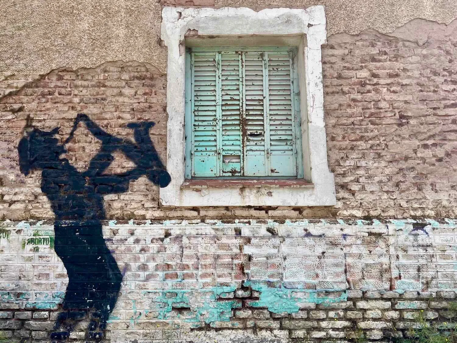 This silhouette painted on a building near the old railroad corridor seemed to capture the melancholy, yet resilient spirit of the town. Zapala, Neuquén, Argentina. Copyright © 2019-2025 Pedals and Puffins.