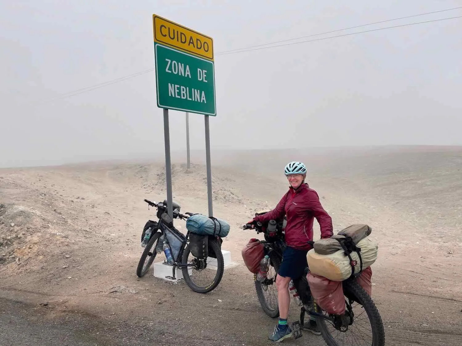 This sign said, “Warning, Fog Zone.” We didn’t really need a sign to tell us that. NE of Camaná, Pan-American Highway, Arequipa Department, Peru. Copyright © 2019-2026 Pedals and Puffins.