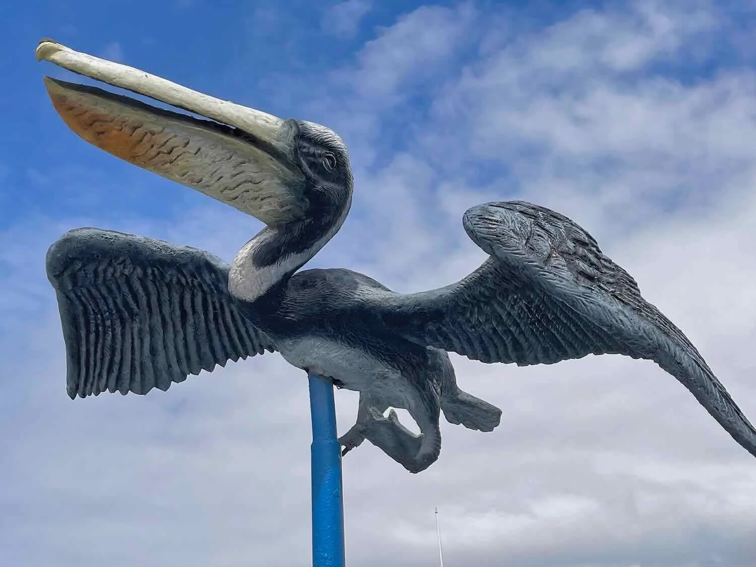 Pelicans were often portrayed in Peruvian art, like this statue in Atico’s plaza. They have represented prosperity, abundance, and generosity since pre-Colombian times. Atico, Pan-American Highway, Arequipa Department, Peru. Copyright © 2019-2026 Pedals and Puffins.