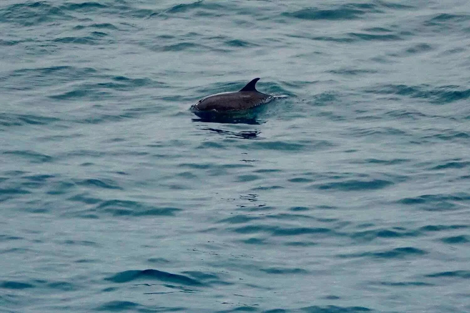 From one roadside overlook, we saw this lone, dolphin feeding near the shore. W of Ocoña, Pan-American Highway, Arequipa Department, Peru. Copyright © 2019-2026 Pedals and Puffins.