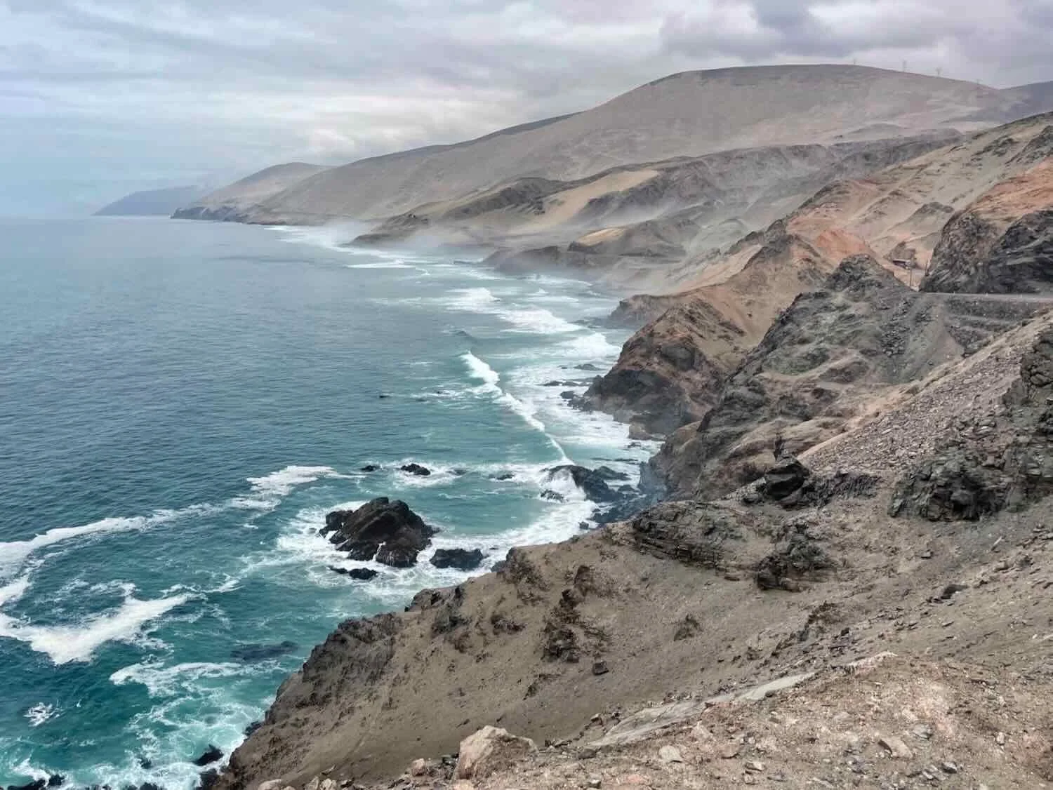 Ocean mist settled in the coves along the rocky shoreline, offering breathtaking views. W of Las Calaveritas, Pan-American Highway, Arequipa Department, Peru. Copyright © 2019-2026 Pedals and Puffins.