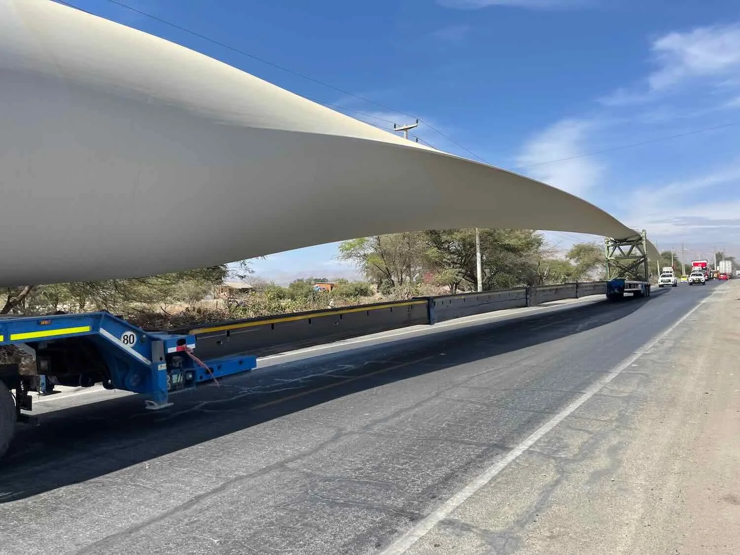 And the wind farm is still growing. We saw these massive turbine blades being transported to the site. Each blade measures more than 230 ft (70 m) in length, which is longer than the wingspan of a Boeing 747 jet. Wayra Wind Farm, S of Nazca, Pan-American Highway, Ica Department, Peru. Copyright © 2019-2026 Pedals and Puffins.
